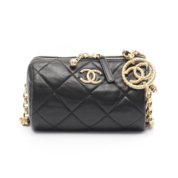 CHANEL Mini Bowling Matelasse Shoulder Bag Lambskin (Sheepskin) Women\'s Black AS3384