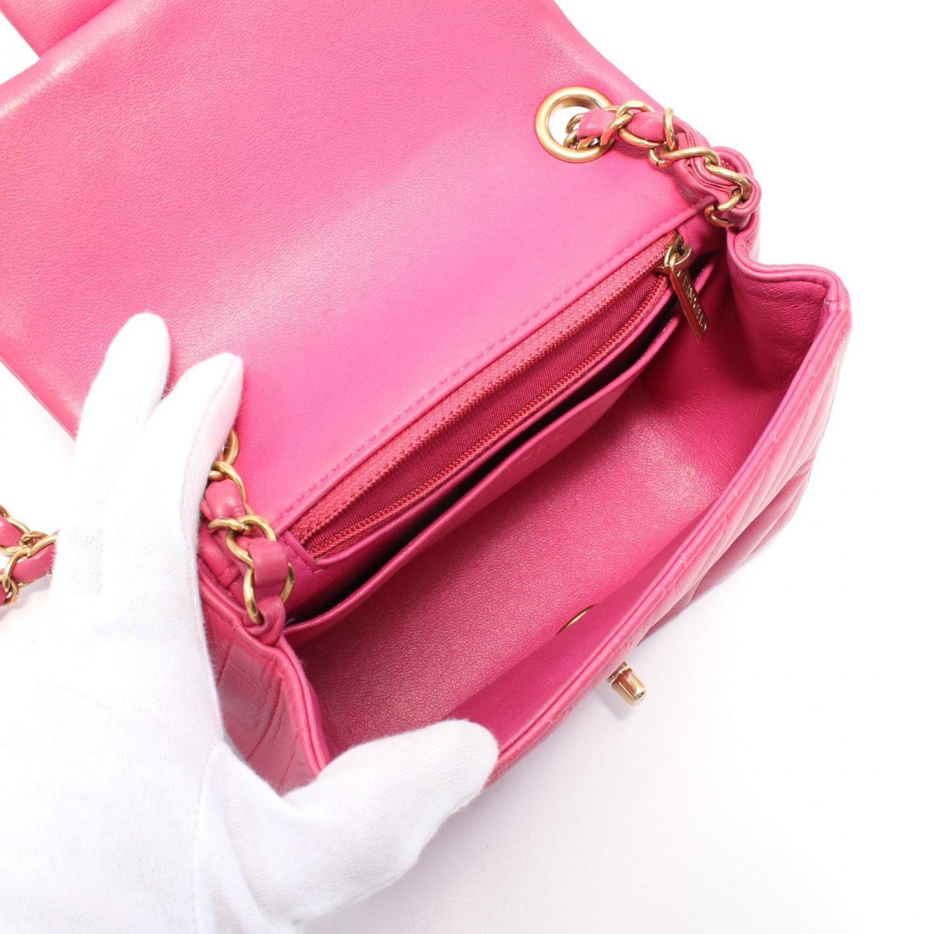 CHANEL Mini Flap Bag Chevron V Stitch Shoulder Lambskin (Sheepskin) Women\'s Pink A35200