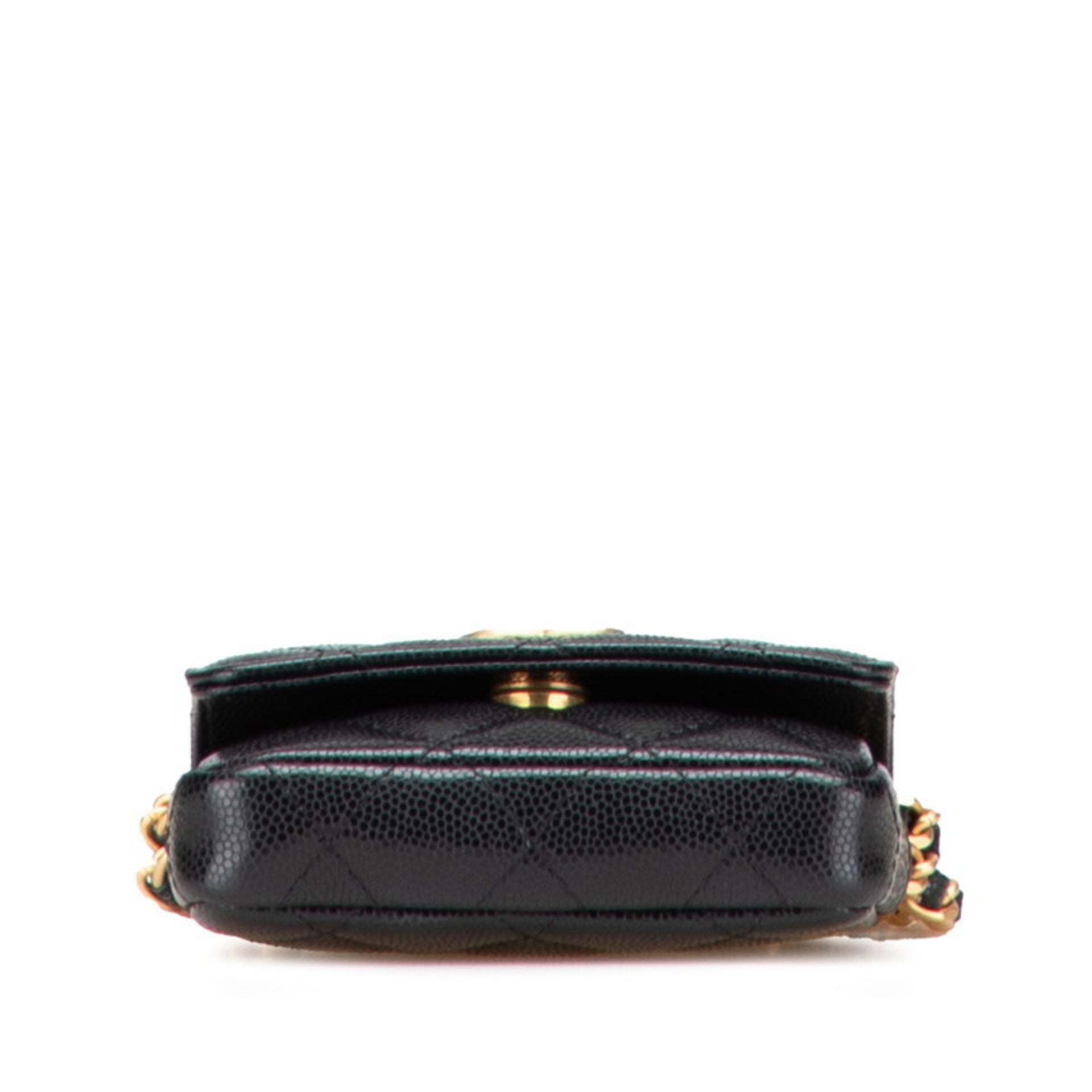 CHANEL Mini Matelasse Coco Mark Waist Bag/Body Bag in Black Caviar Skin for Women