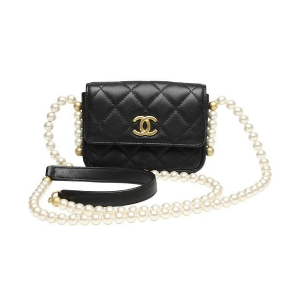 CHANEL Mini Matelasse Shoulder Bag in Black Lambskin