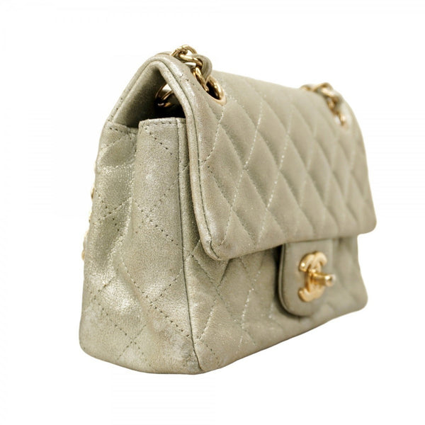 Chanel Mini Matelasse Shoulder Bag with Double Chain, Leather, Gray, Champagne, Women\'s