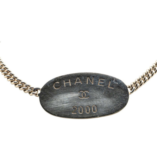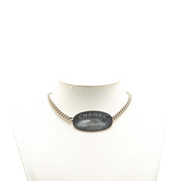 Chanel Oval Tag 2000 Chain Necklace in Silver Metal for Women