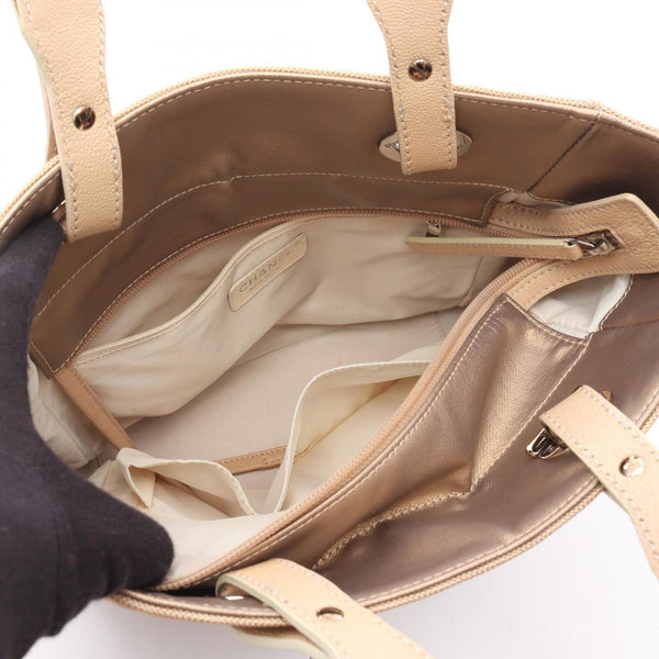 CHANEL Paris Biarritz PM Tote Bag, Coated Canvas and Leather, Women\'s, Gold Beige