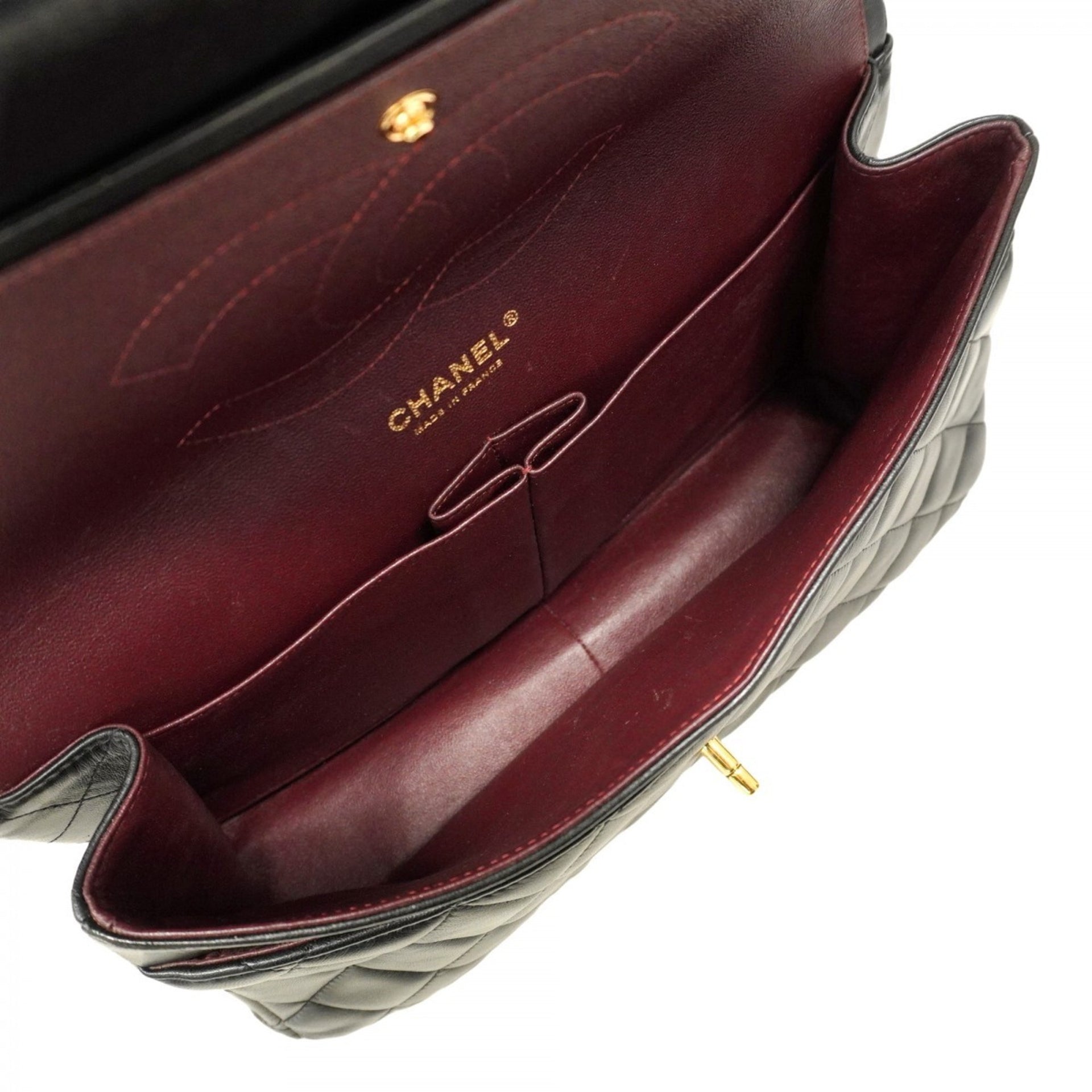 Chanel Shoulder Bag, Deka Matelasse, Double Flap, Chain, Lambskin, Black, Women\'s