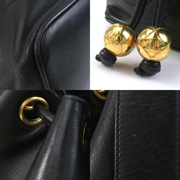 CHANEL Shoulder Bag Leather Metal Black Gold Women\'s e60356g