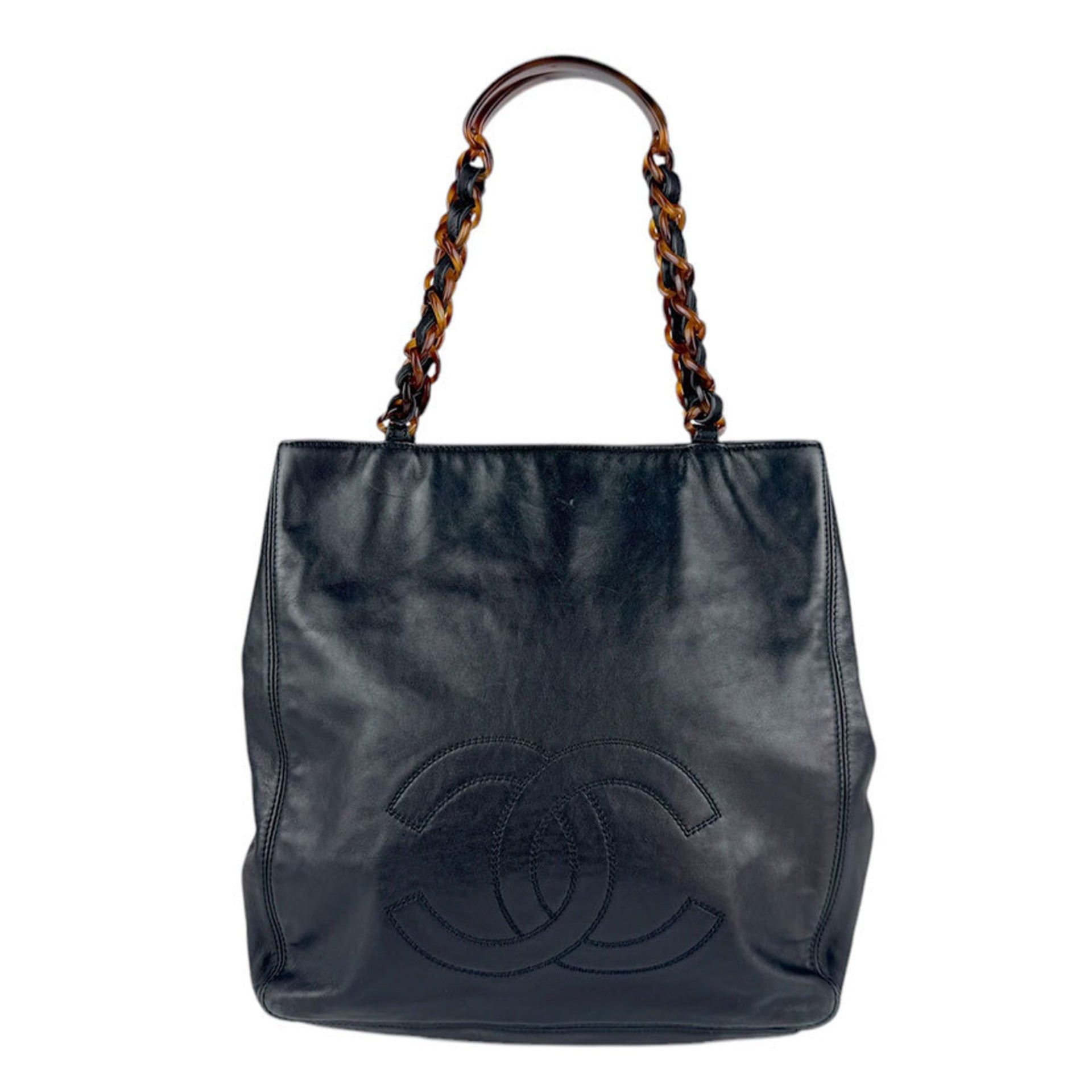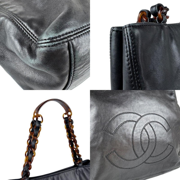 CHANEL Shoulder Bag Leather Plastic Black Brown Women\'s n1097