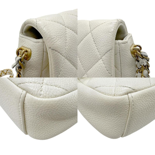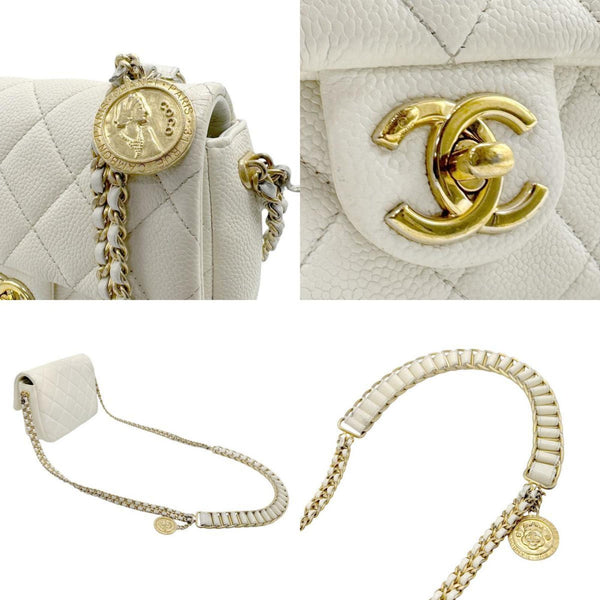 CHANEL Shoulder Bag Matelasse Caviar Leather Metal Off-White Gold Women\'s z2951