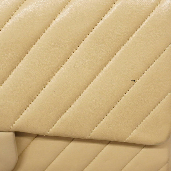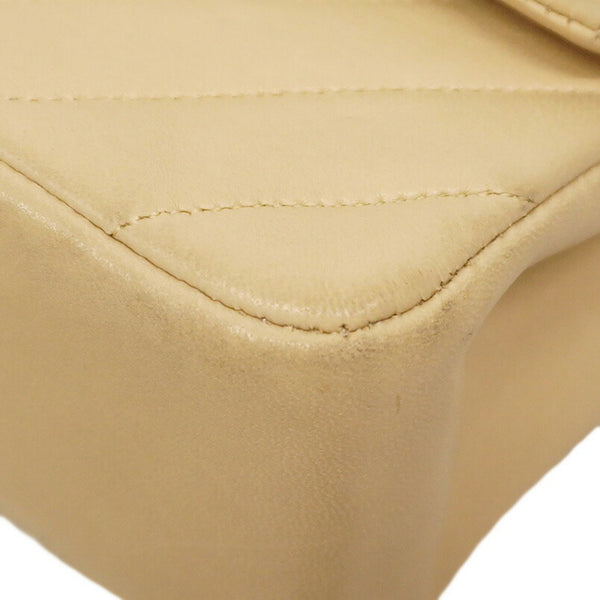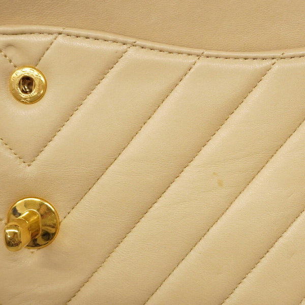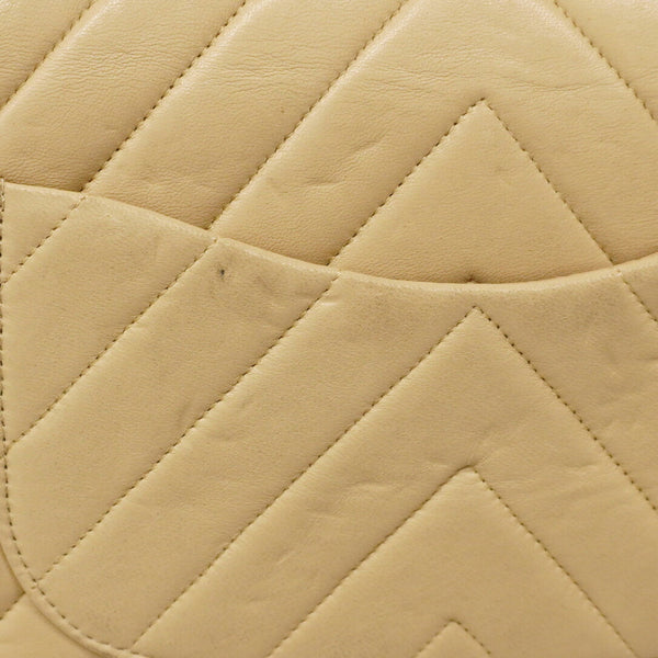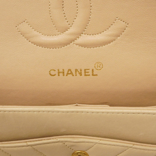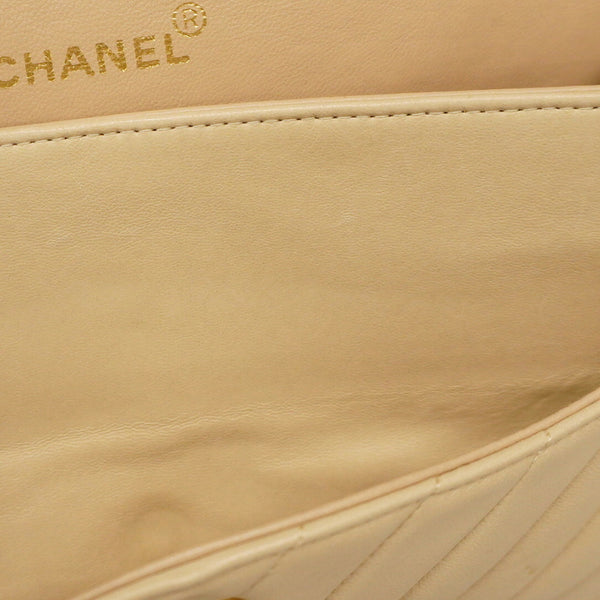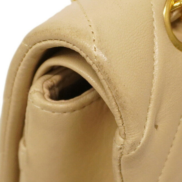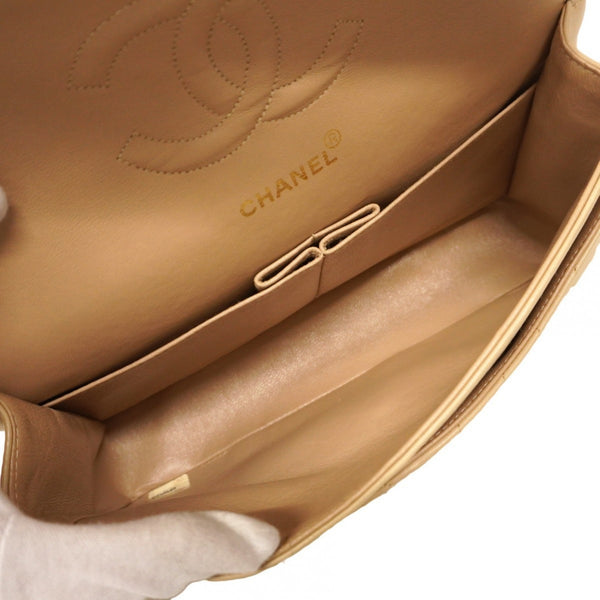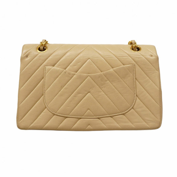 Chanel Shoulder Bag, V-Stitch, Double Flap, Chain, Lambskin, Beige, Women\'s