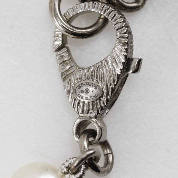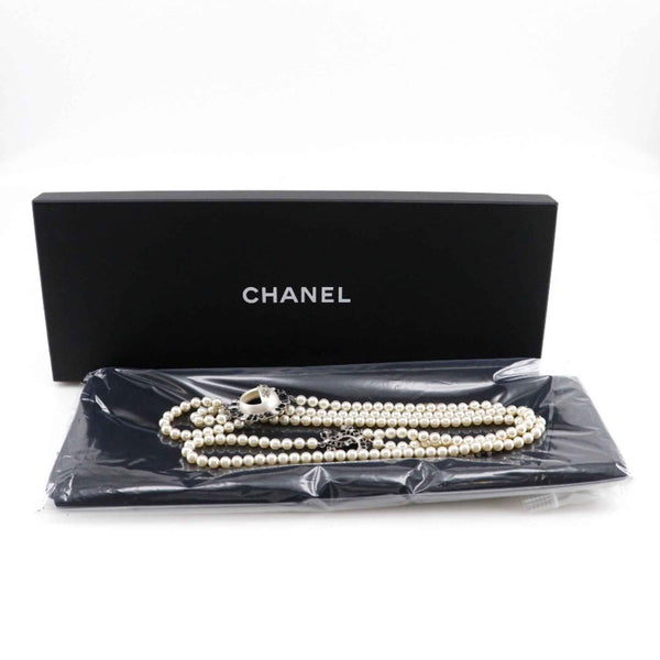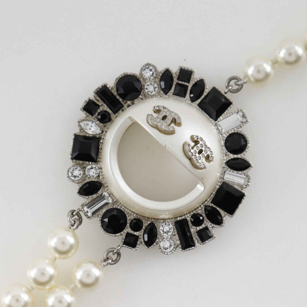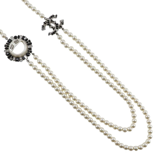 CHANEL Smile Necklace with Coco Mark, B16, Faux Pearl and Rhinestones, Black, Approx. 167g, Unisex