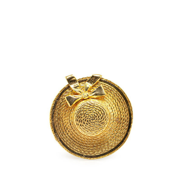 Chanel Straw Hat Ribbon Motif Brooch Gold Plated Women\'s CHANEL