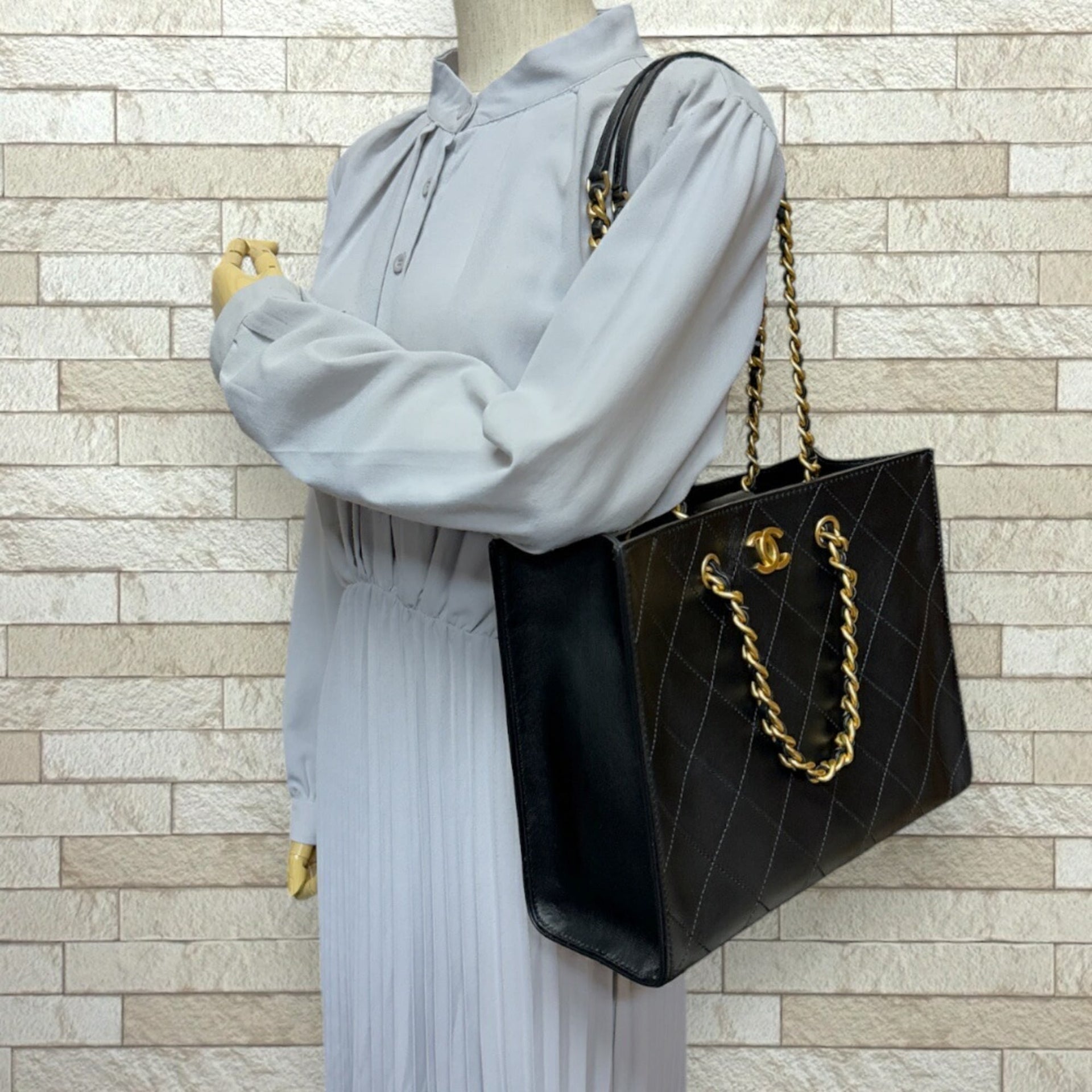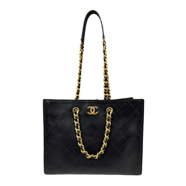 Chanel Tote Bag Leather Black Women\'s CHANEL Chain