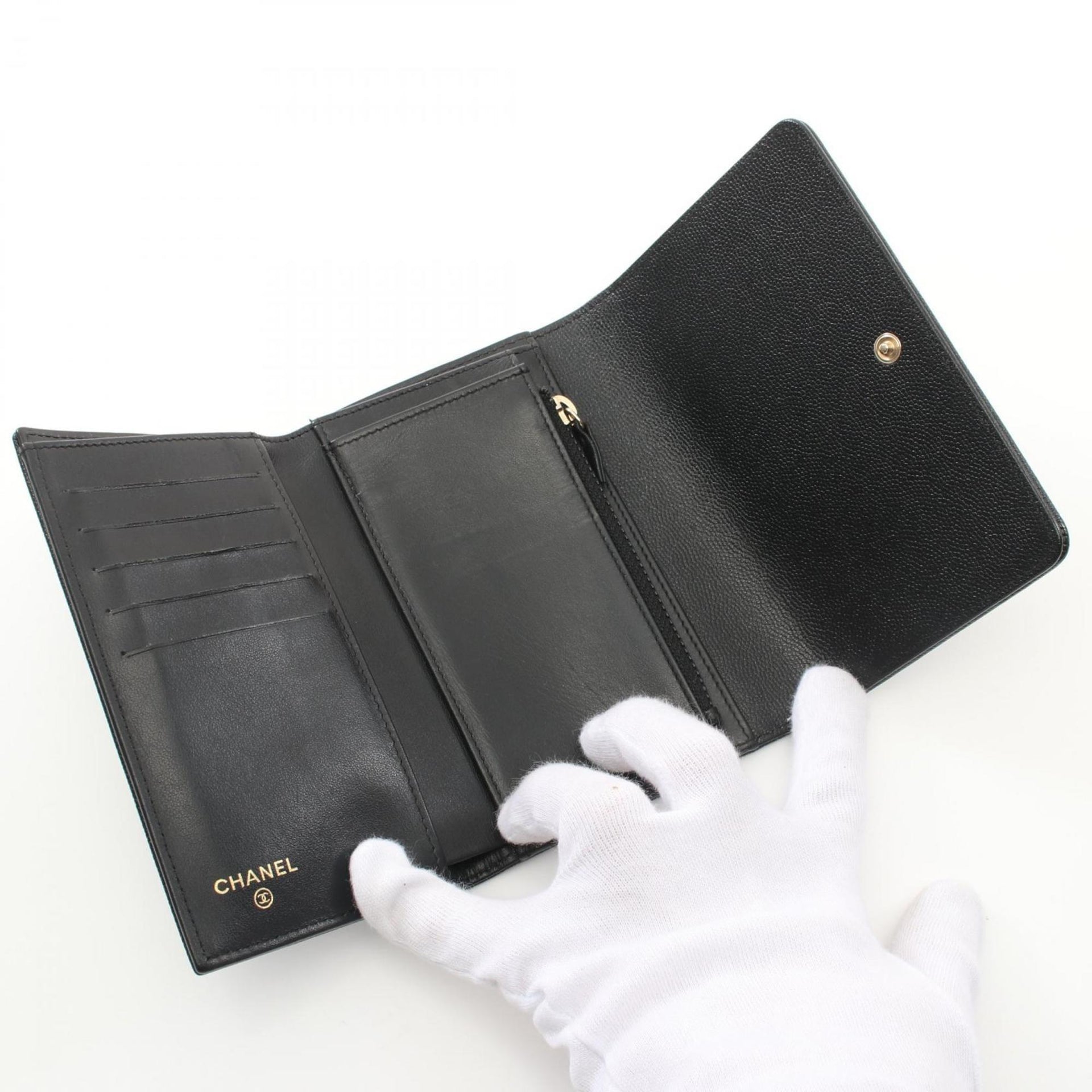 CHANEL Tri-fold Wallet Caviar Skin (Grained Calfskin) Women\'s Black