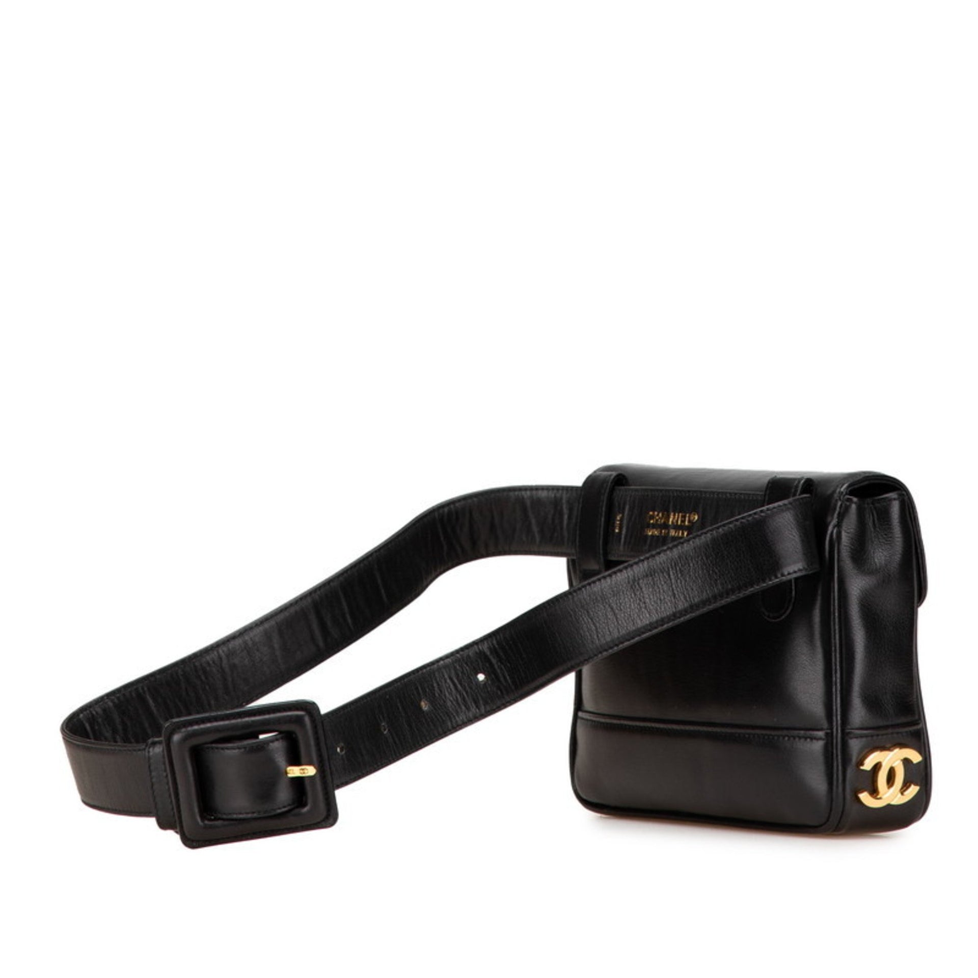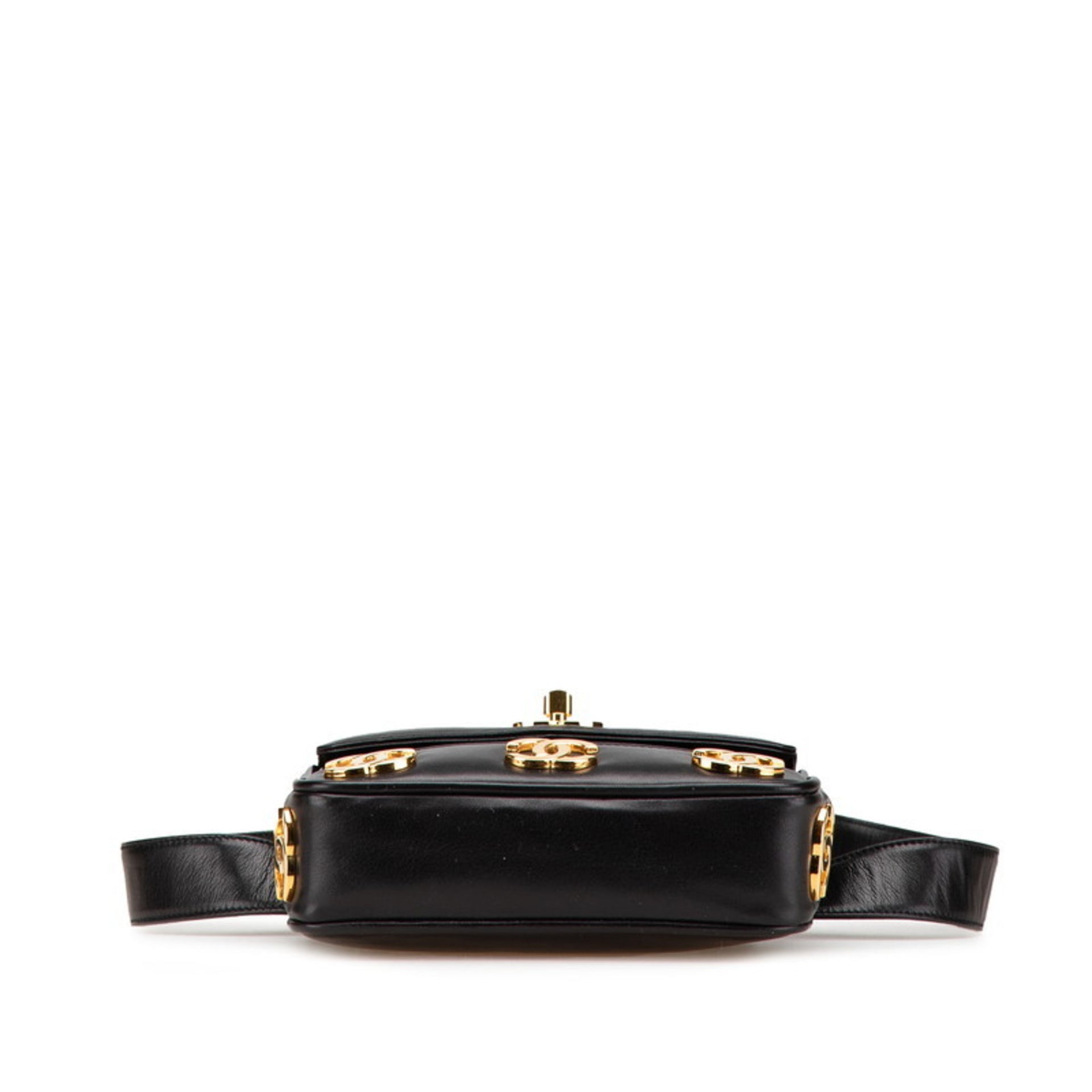 CHANEL Triple Coco Mark Shoulder Bag/Waist Bag 80/32 Black Leather Women\'s