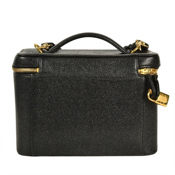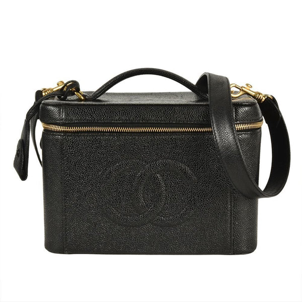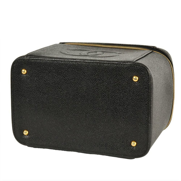 CHANEL Vanity Handbag Caviar Skin Black Coco Mark
