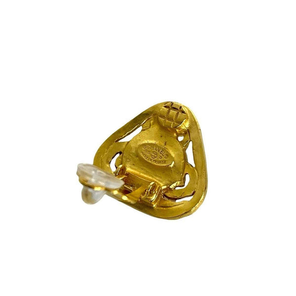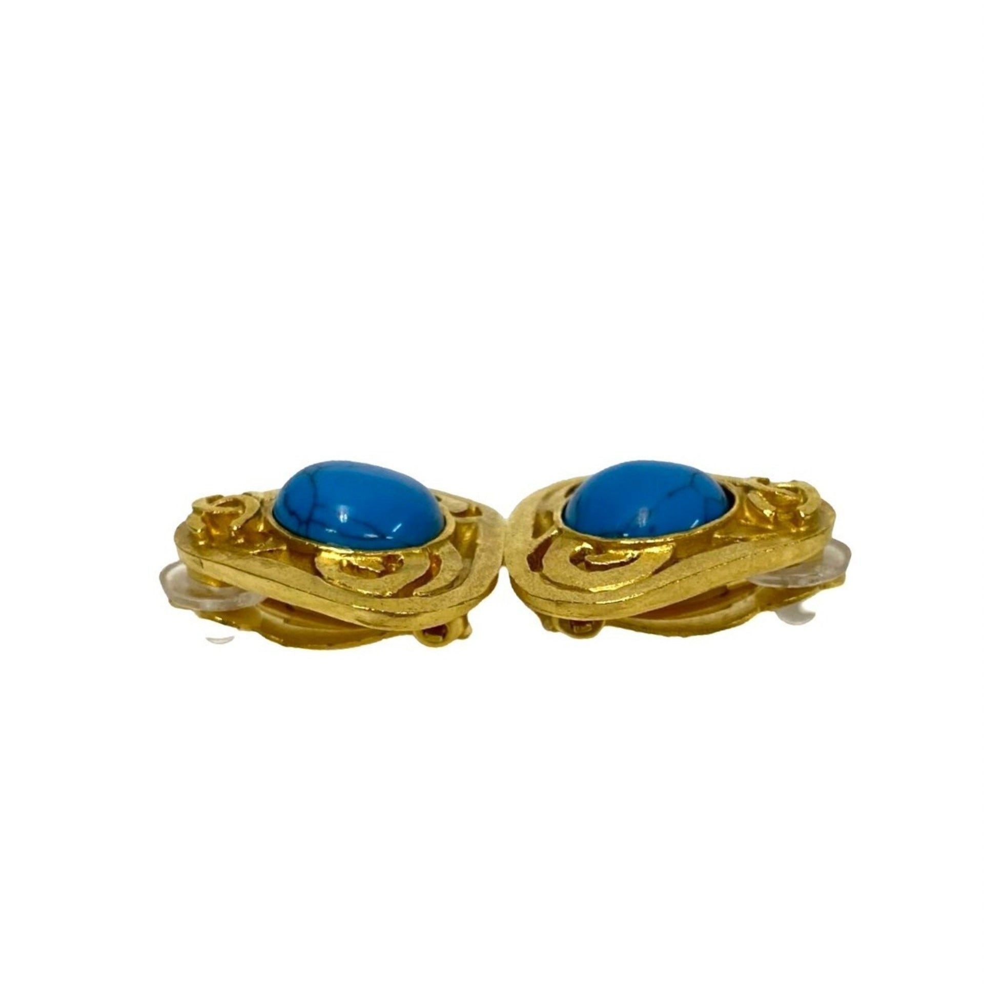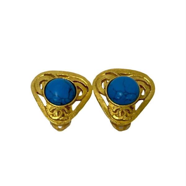 CHANEL Vintage 95P Engraved Coco Mark Turquoise Earrings and Ear Cuffs, Gold, 198-1