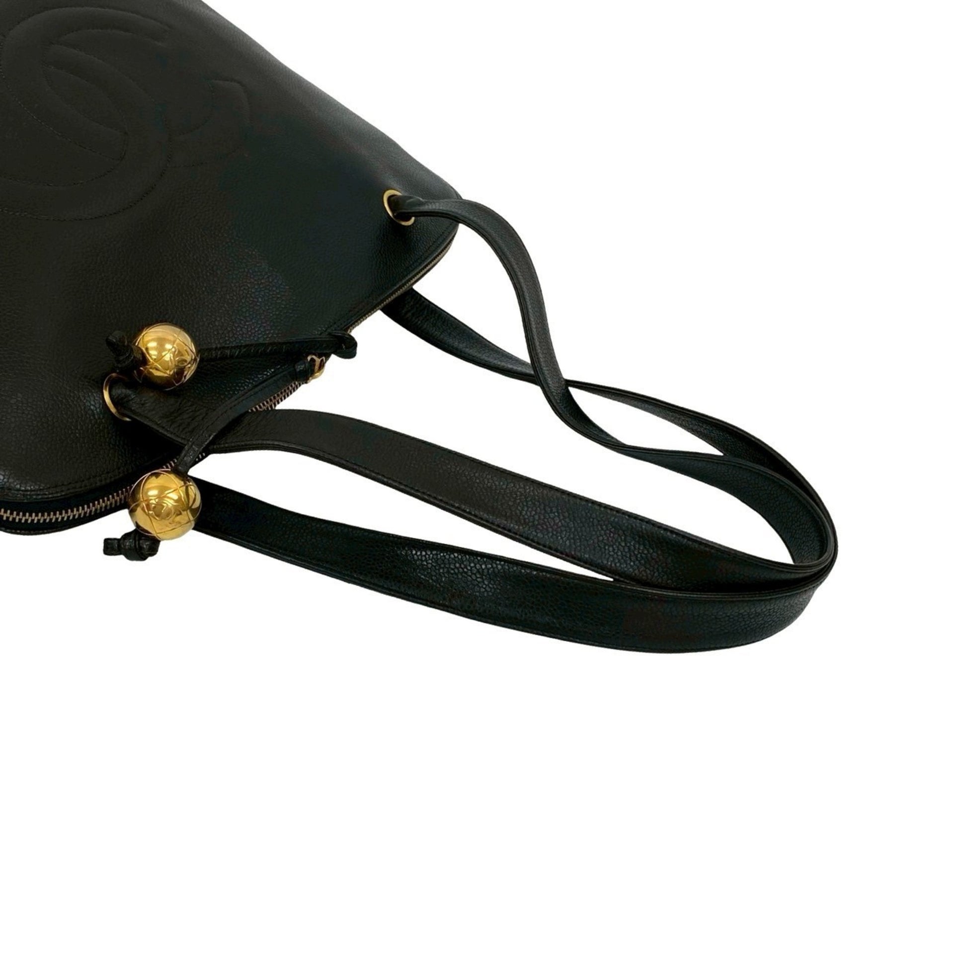 CHANEL Vintage Coco Mark Caviar Leather Semi-Shoulder Bag Tote Black 36473