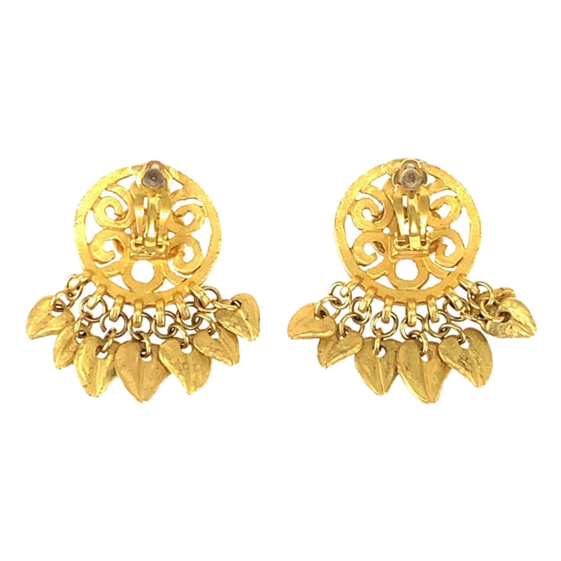 CHANEL Vintage Coco Mark Stone Gold, Red, and Blue Plated Swing Earrings for Women