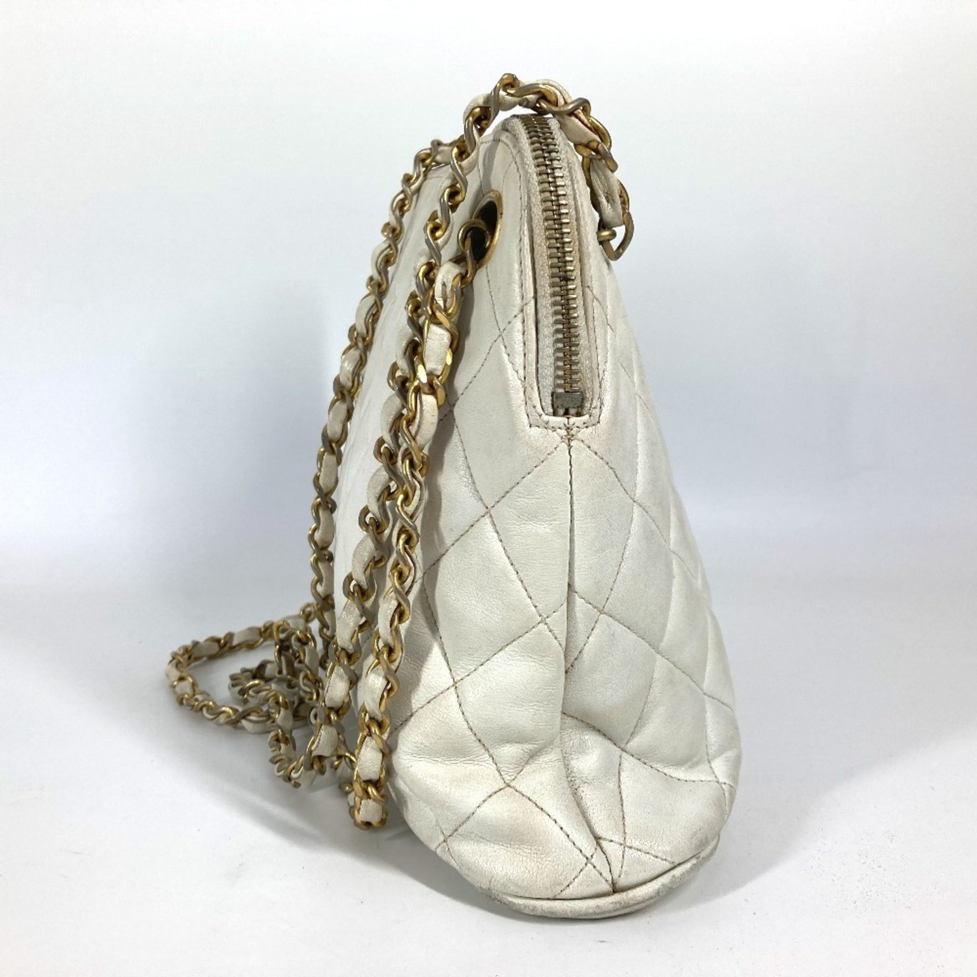 CHANEL Vintage Matelasse Quilted Logo Double Chain Bag Shoulder Leather Women\'s White