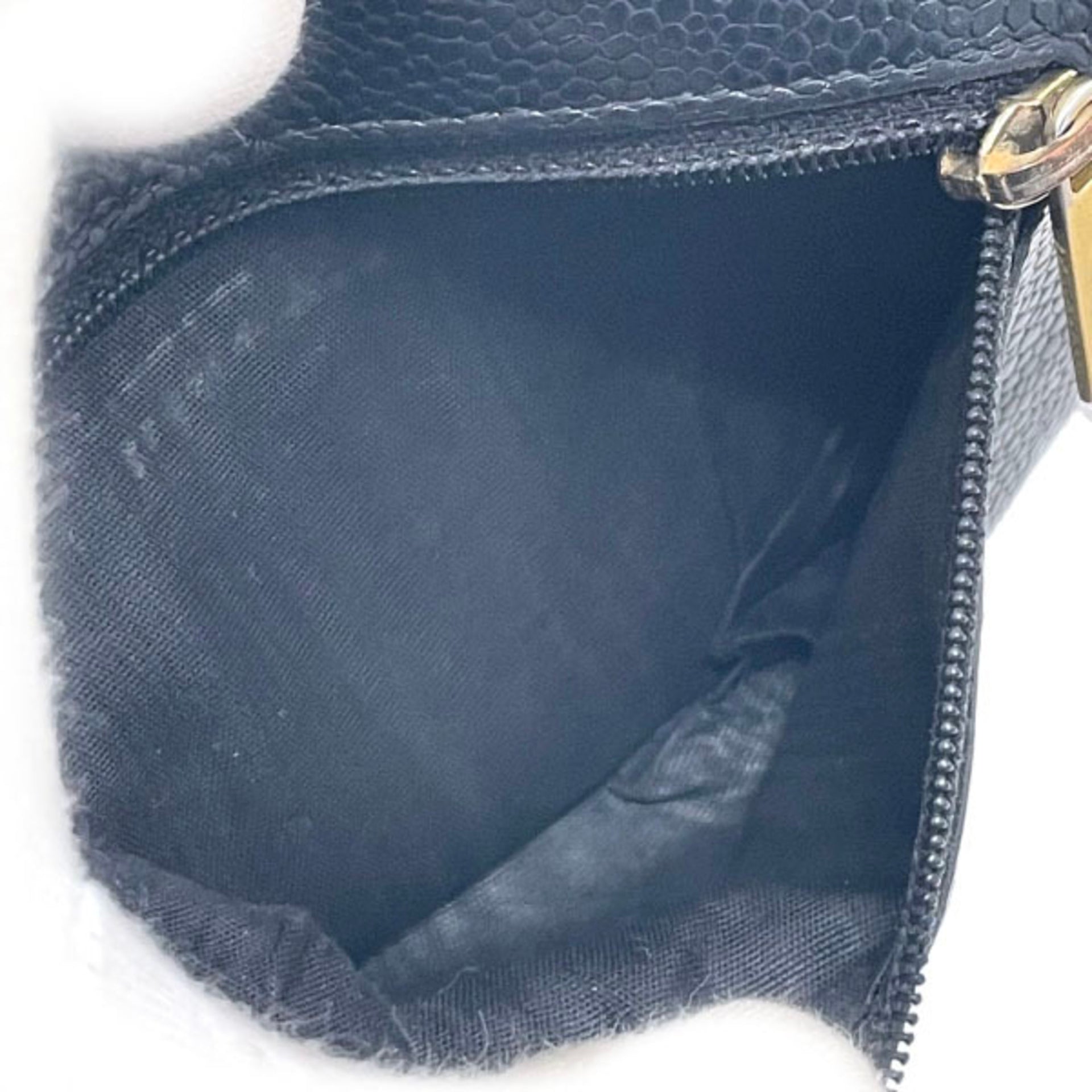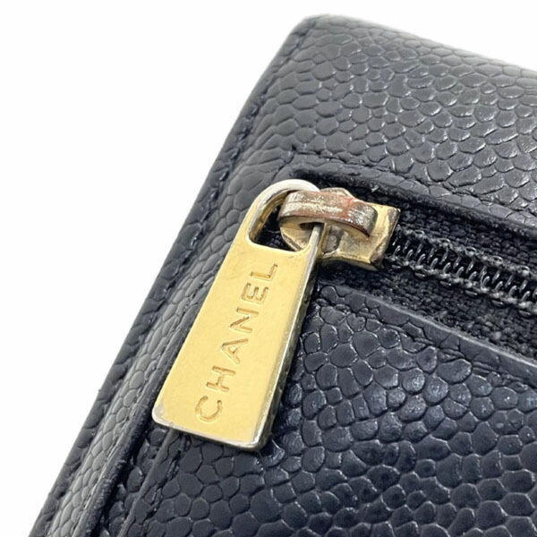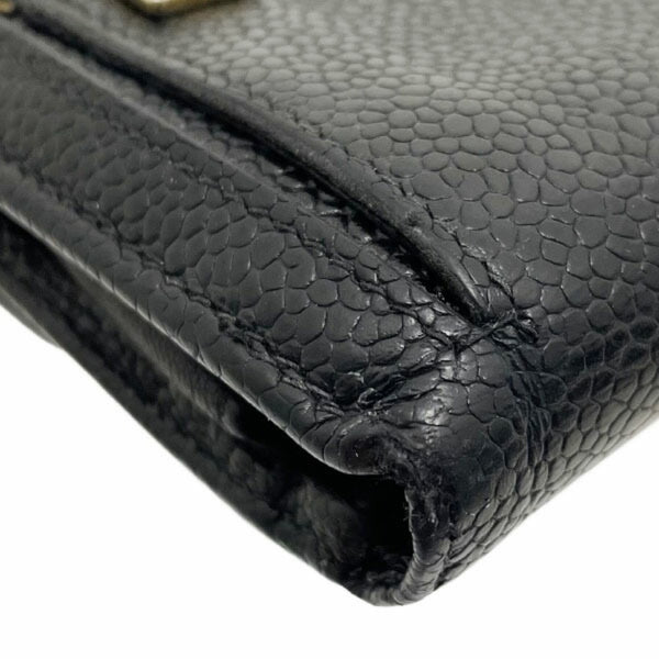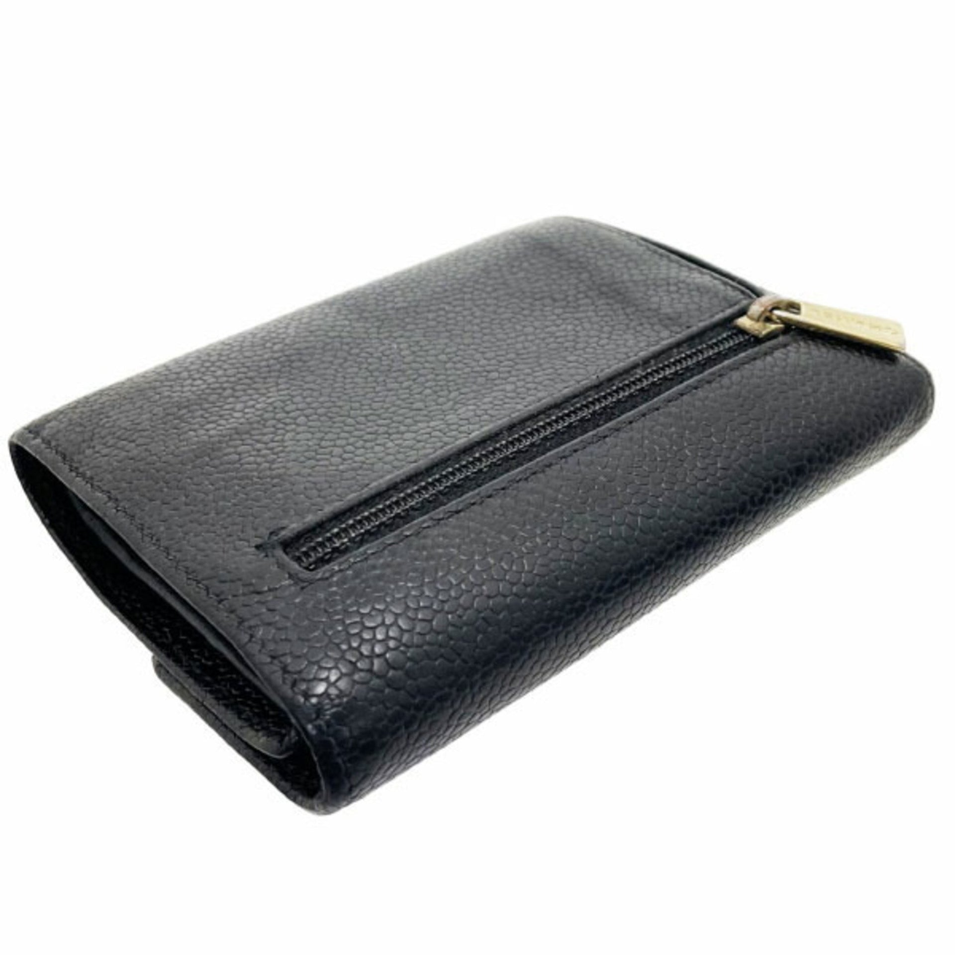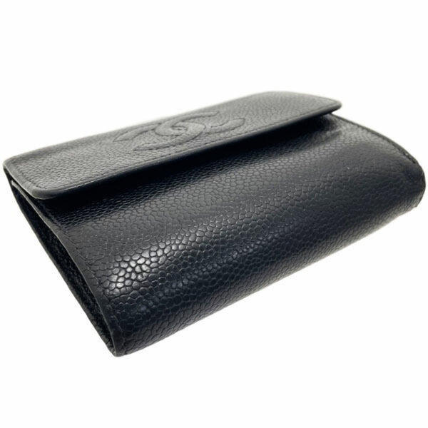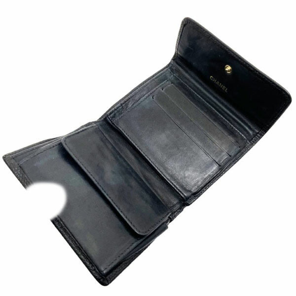 Chanel Wallet Coco Mark Tri-fold Caviar Skin Leather Black CHANEL CC Women\'s RR-14409