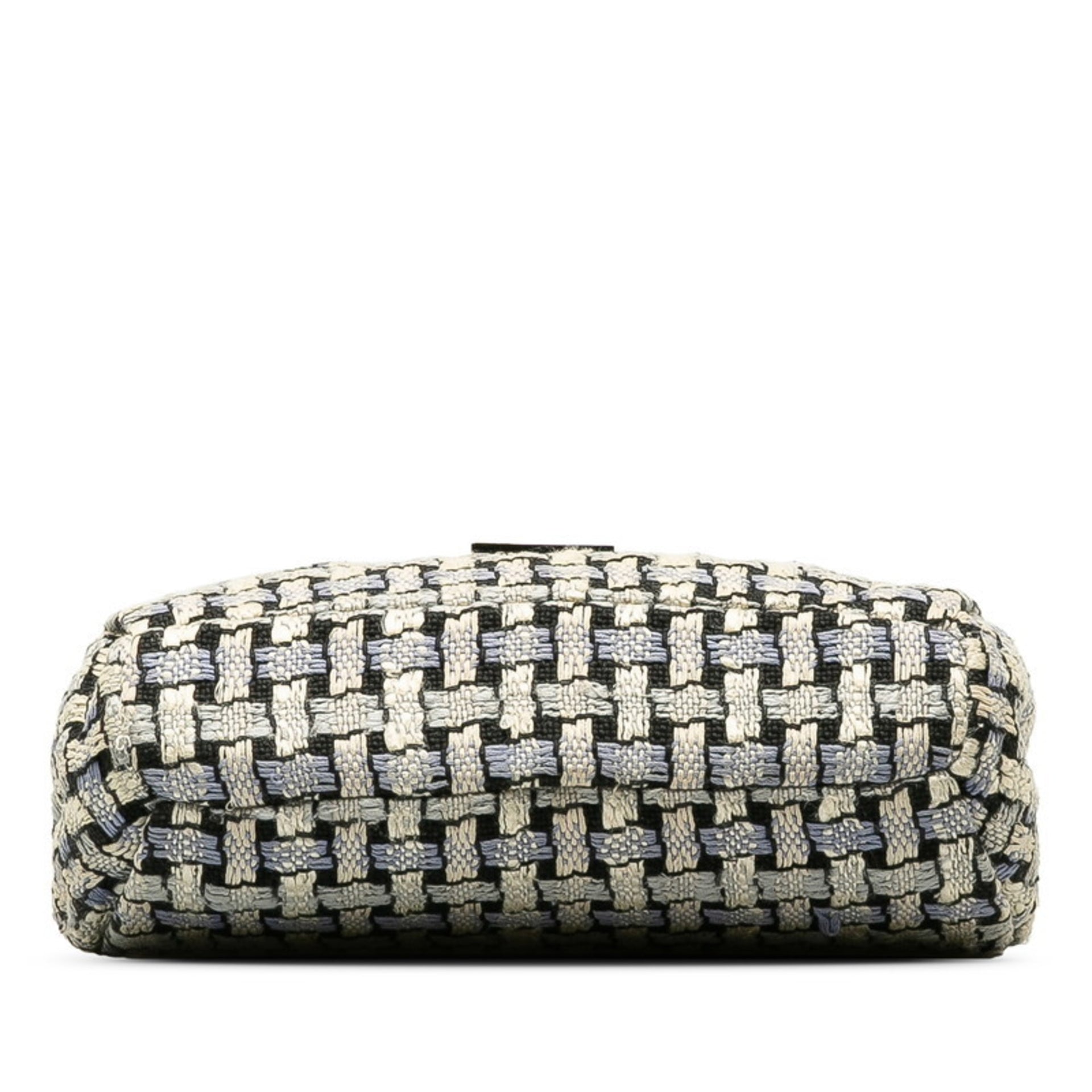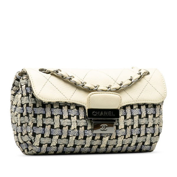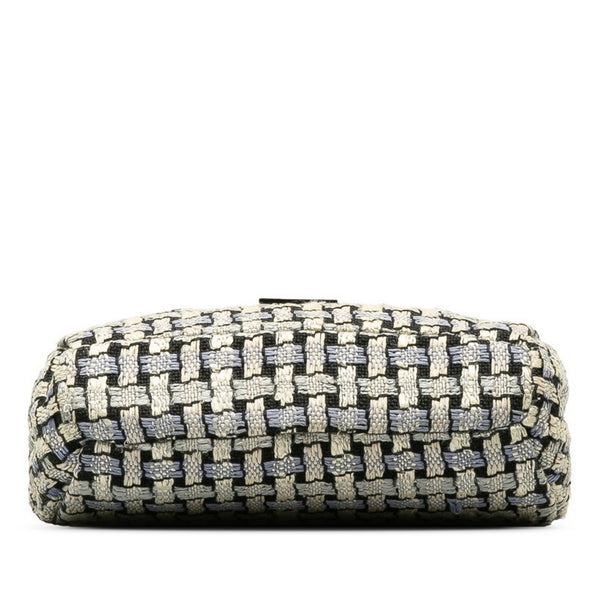 CHANEL Wild Stitch Coco Mark Tweed Chain Shoulder Bag Blue White Wool Leather Women\'s