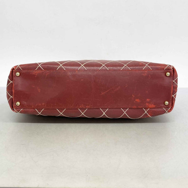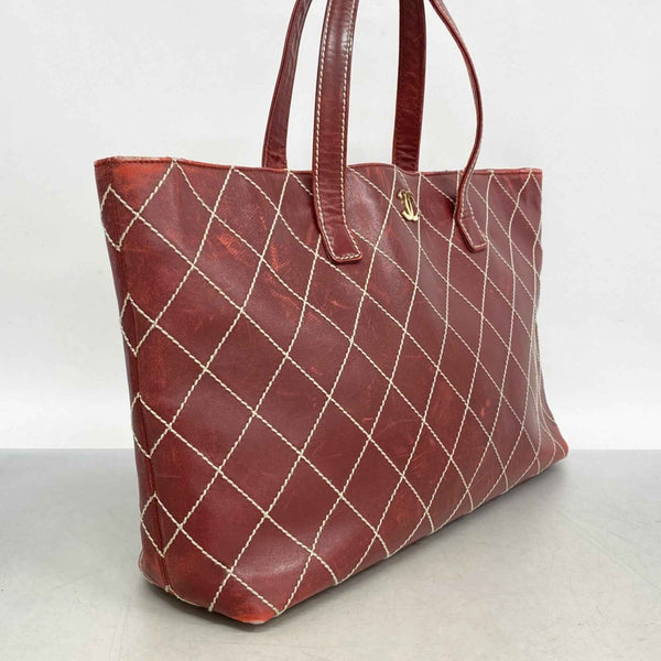 Chanel Wild Stitch Leather Tote Bag, Red, Women\'s