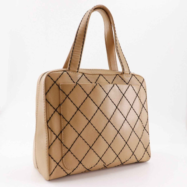 CHANEL Wild Stitch Tote Bag A14693, Beige Calfskin, A5 Size, Double, Women\'s
