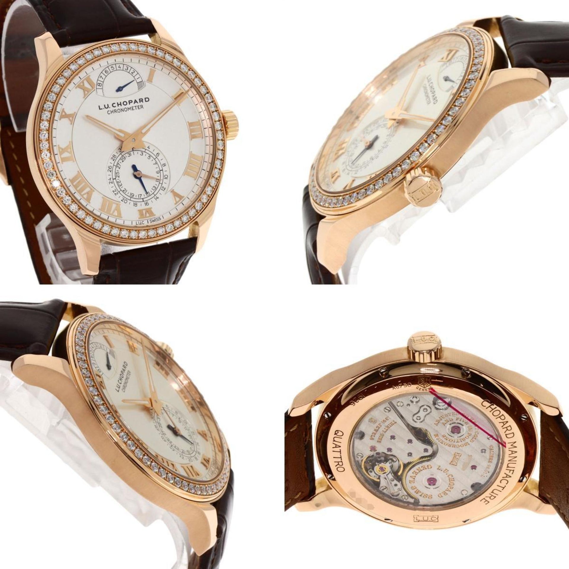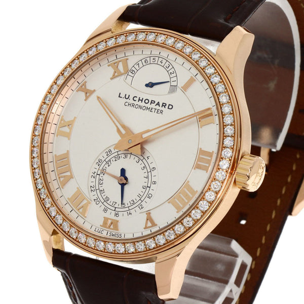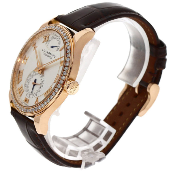 Chopard 171926-5001 L.U.C Quattro Diamond Bezel Watch K18 Pink Gold Leather Men\'s