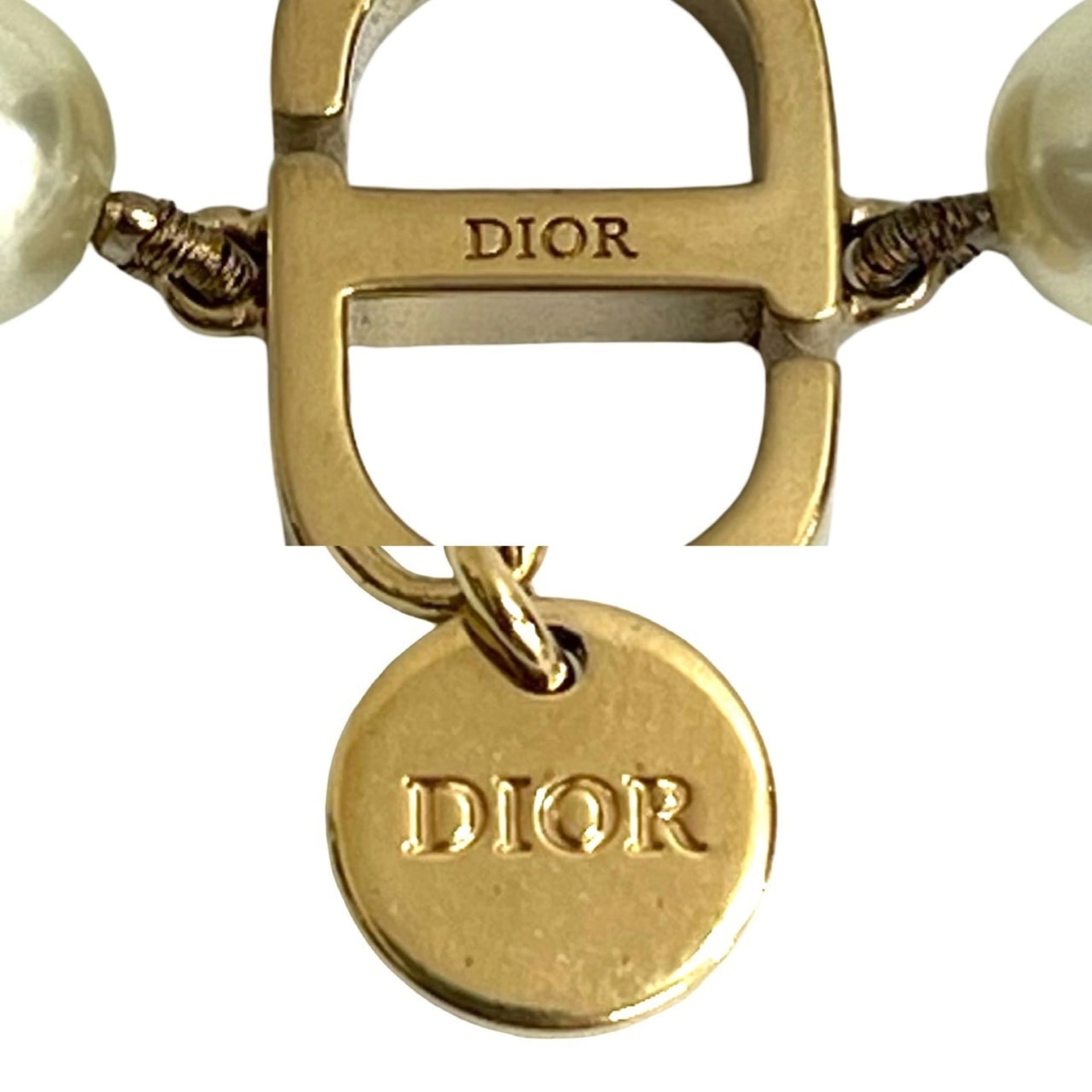 Christian Dior CD Logo GP Faux Pearl Chain Necklace Pendant Gold 09189