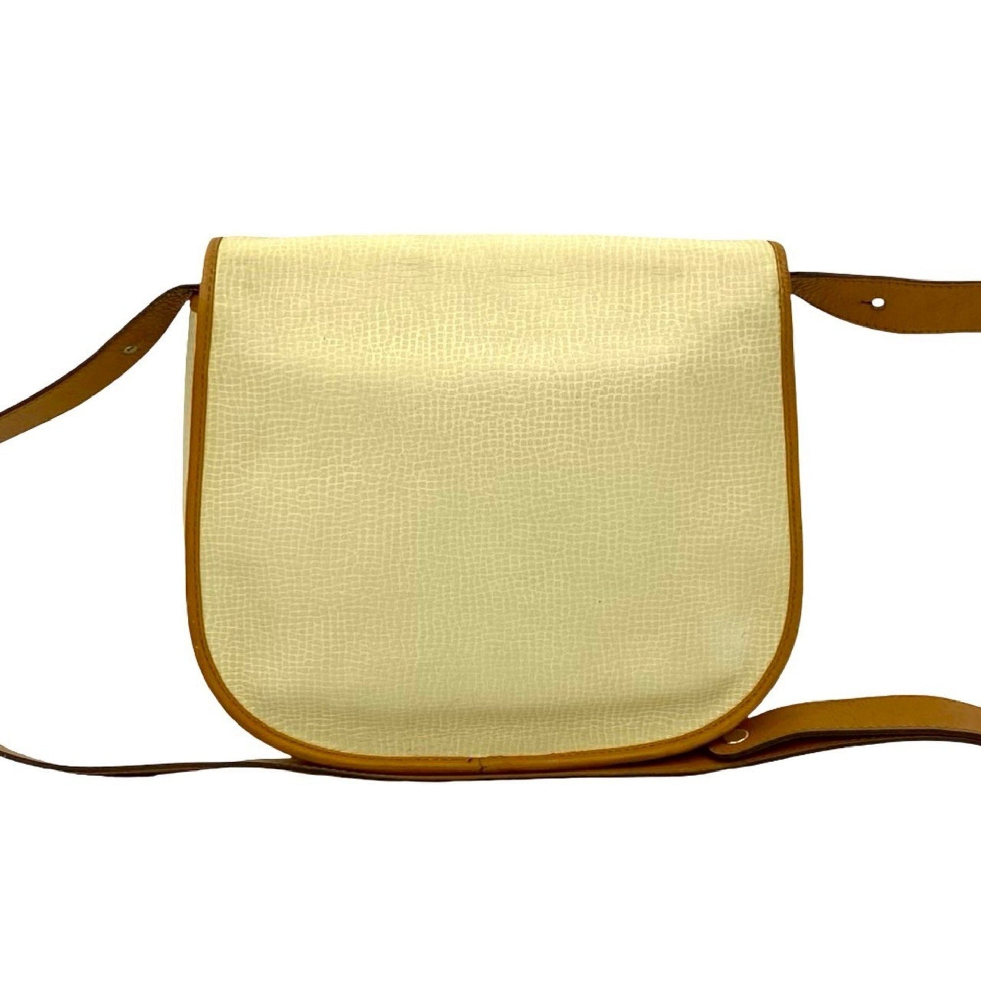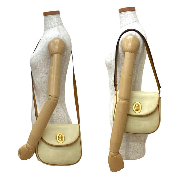 Christian Dior CD logo hardware leather genuine shoulder bag pochette ivory camel 362-1