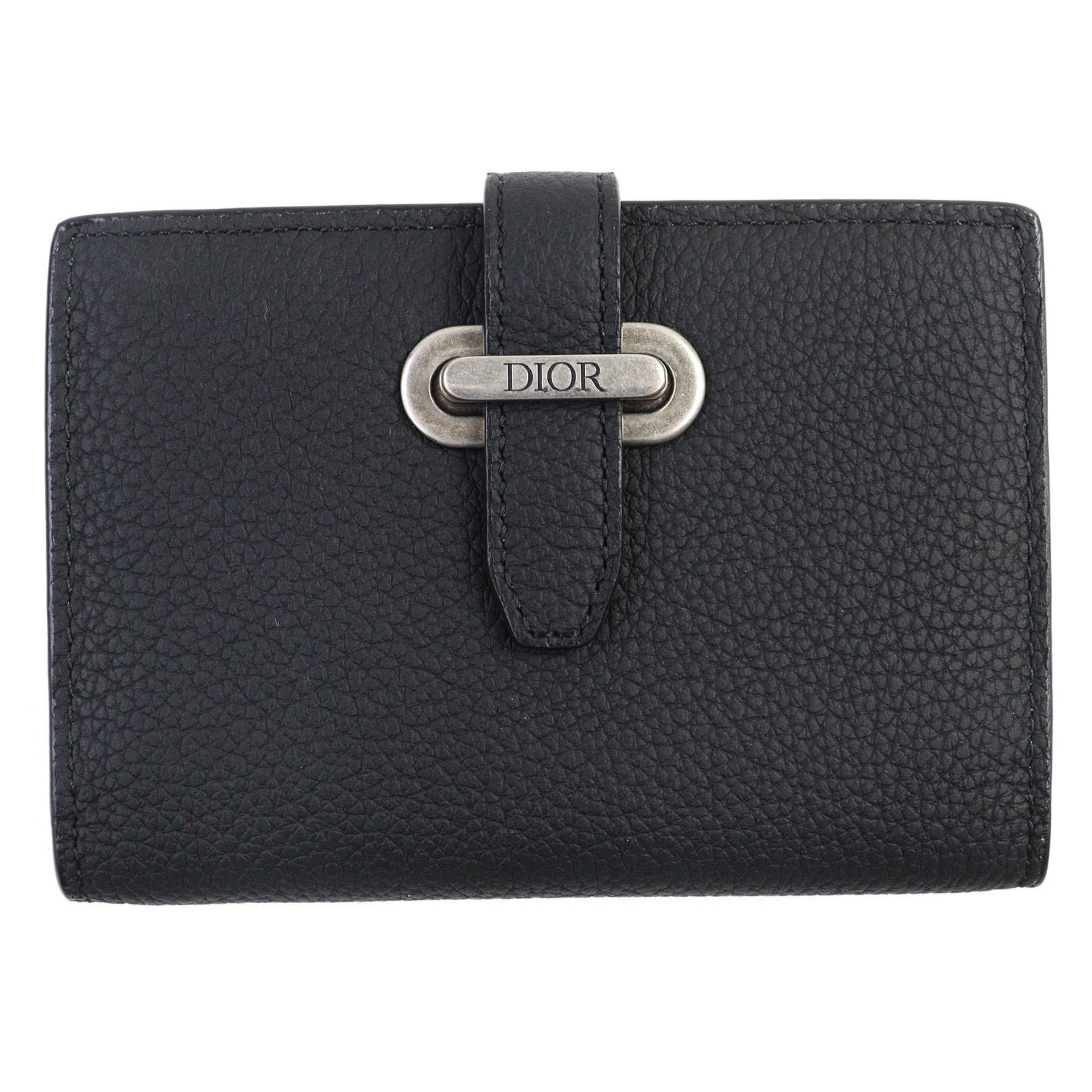Christian Dior DIOR 2LLCH187KEN Dior Normandie Logo Leather Card Holder/Card Case in Black with Silver Hardware and Dust Bag, Made Italy for Men