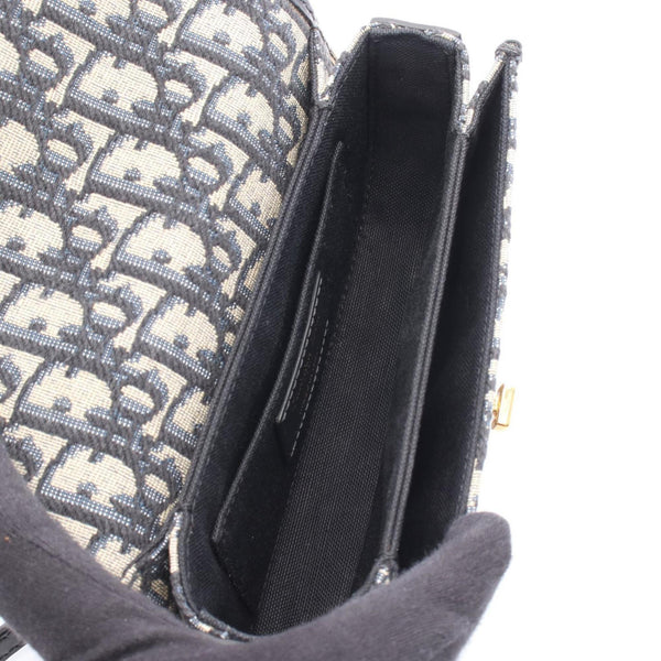 Christian Dior Dior 30 MONTAIGNE Avenue Small Oblique Shoulder Bag, Canvas and Leather, Women\'s, Navy Gray