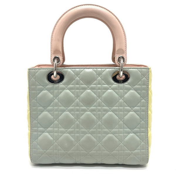 Christian Dior Dior Cannage Lady 2-Way Bag Shoulder Handbag Leather Women\'s Blue x Yellow Pink