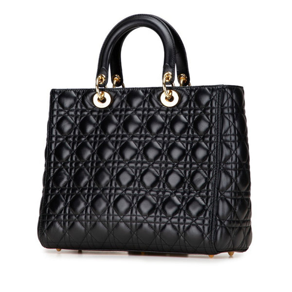 Christian Dior Dior Cannage Lady Large Handbag/Shoulder Bag 2WAY CAL44560 Black Lambskin Women\'s
