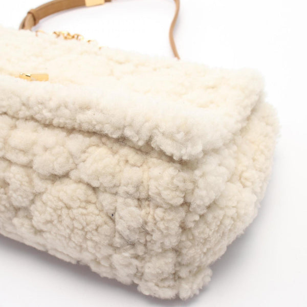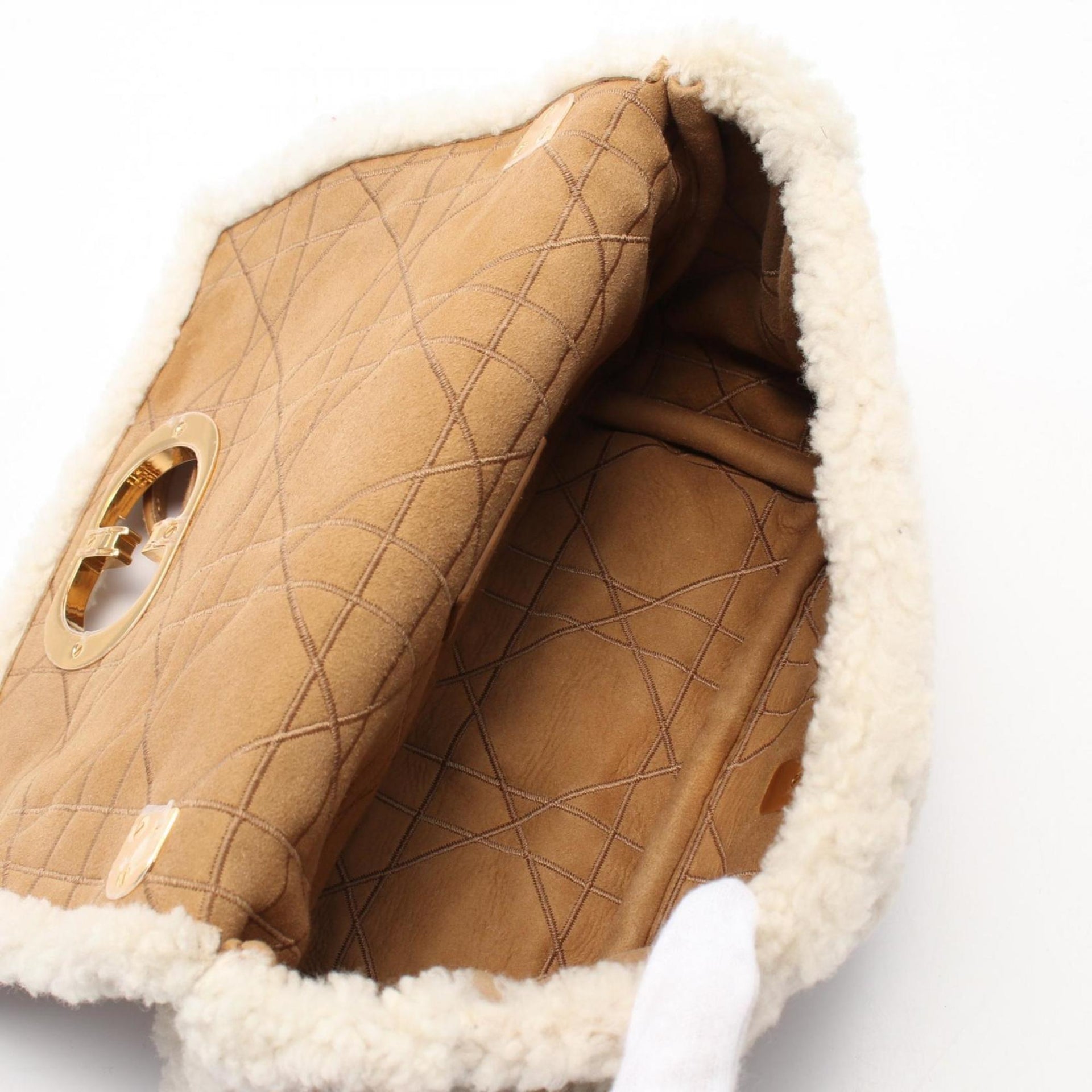 Christian Dior Dior CARO Sheepskin Shearling Shoulder Bag Mouton Women\'s Ivory Brown