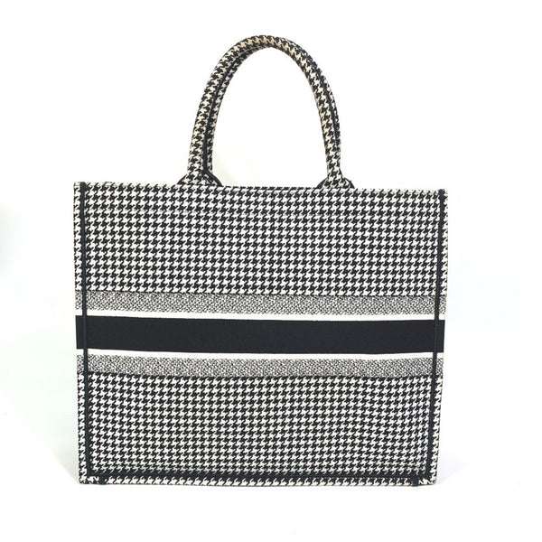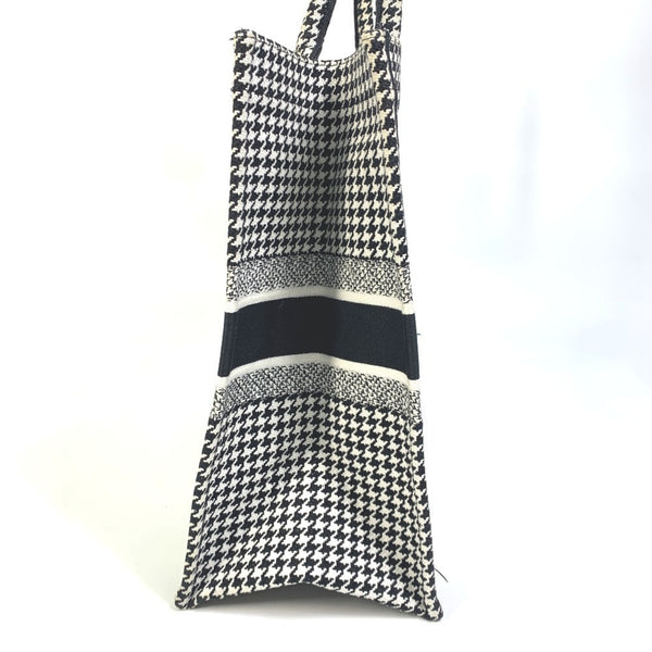 Christian Dior Dior Houndstooth Embroidered Book Tote Canvas Shoulder Bag in White/Black