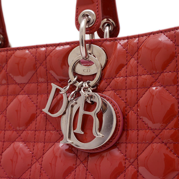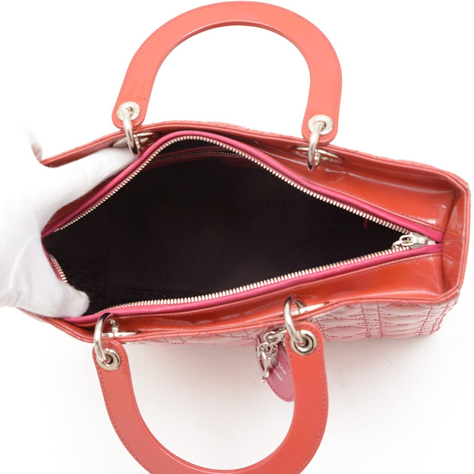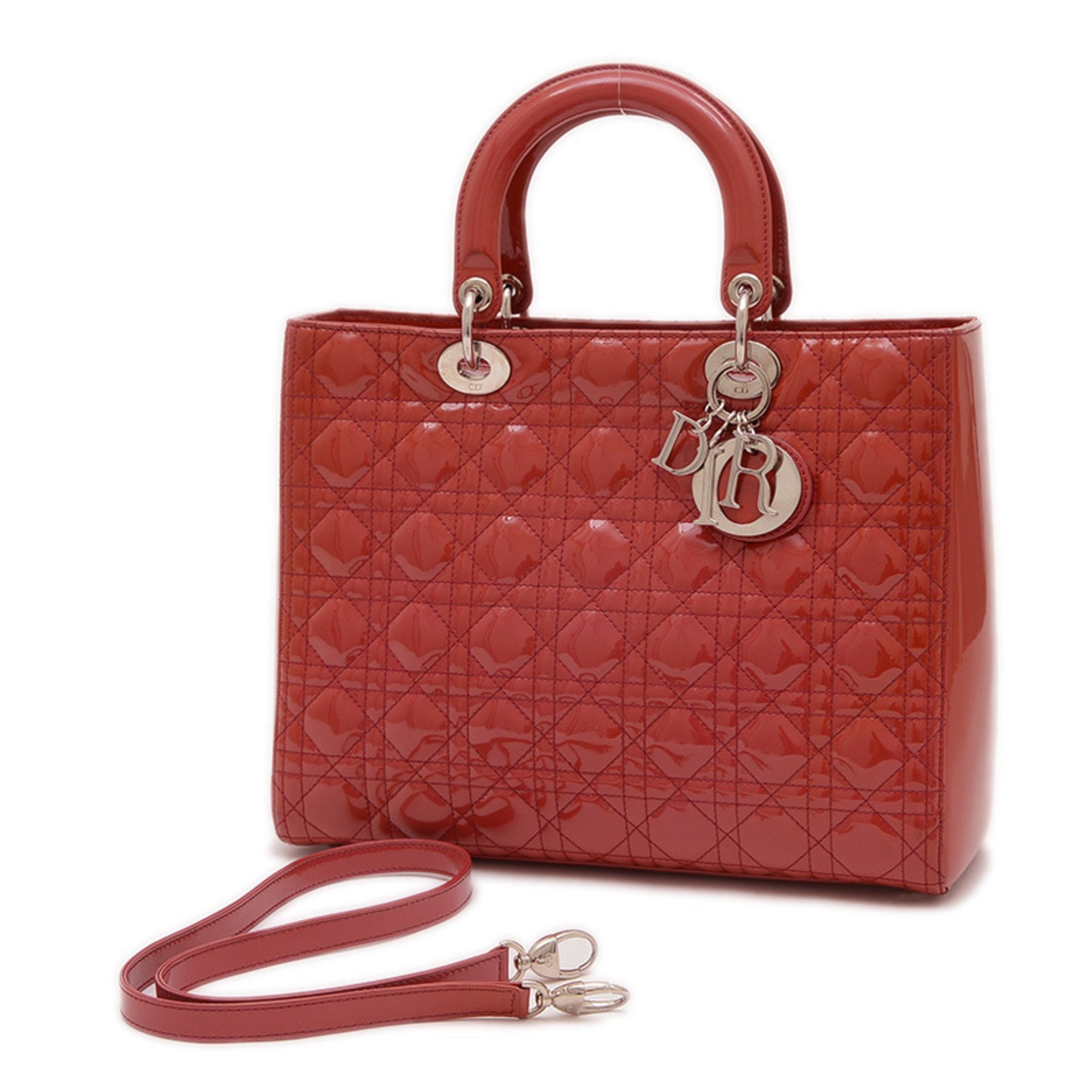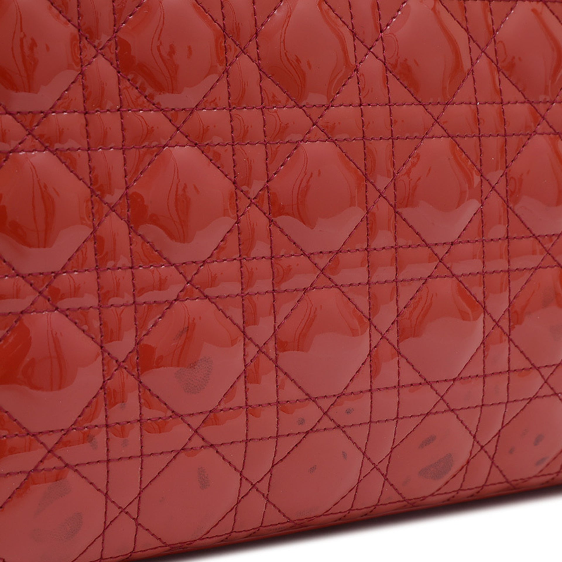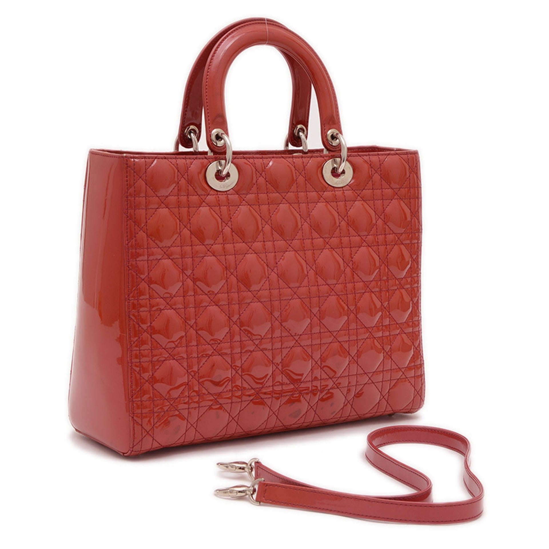 Christian Dior Dior Lady Cannage Large 2WAY Bag Handbag Patent Red BP