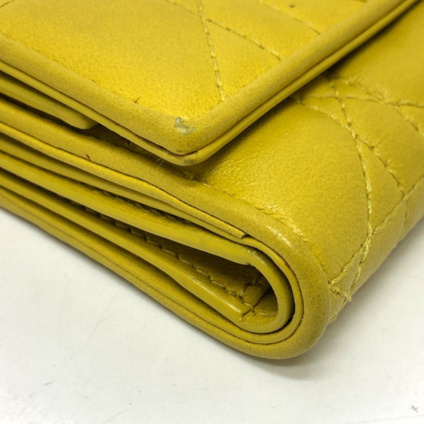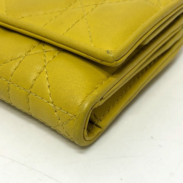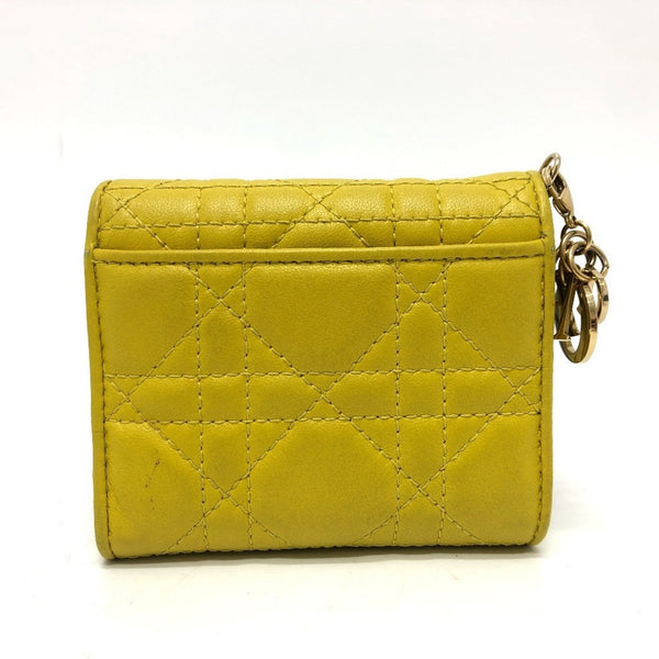 Christian Dior Dior Lady Cannage Lotus Wallet Compact Tri-fold Leather Women\'s Yellow Gold Hardware