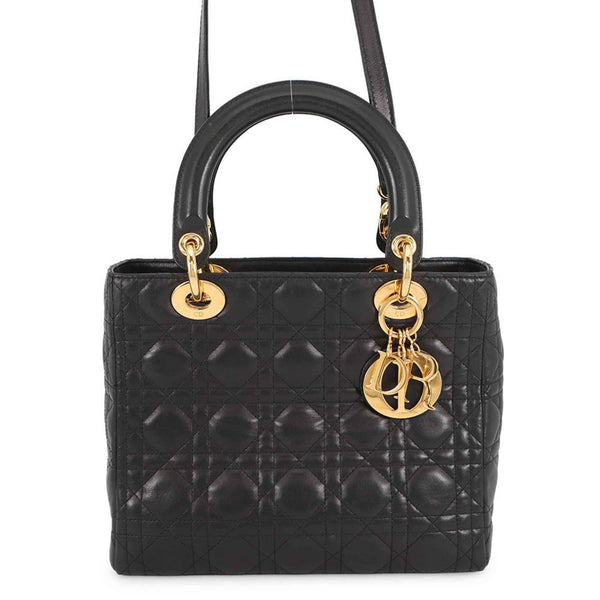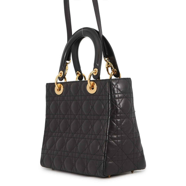 Christian Dior Dior Lady Cannage Medium Leather Handbag in Black, Christian 2-Way