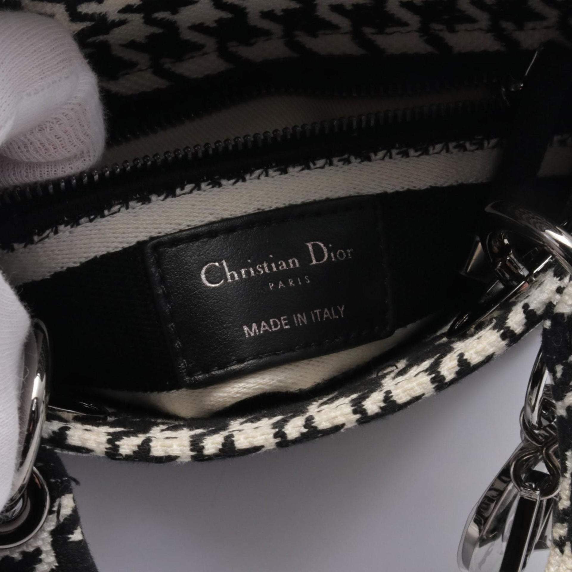 Christian Dior Dior LADY D-LITE Mini Handbag Canvas Women\'s Black White
