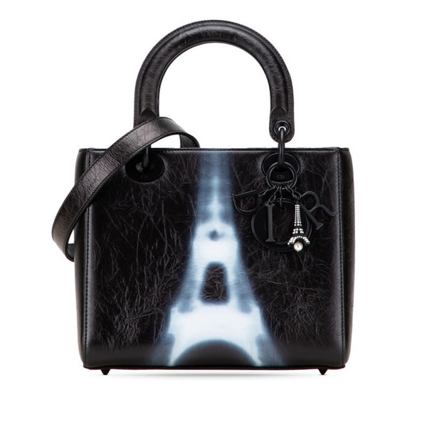 Christian Dior Dior Lady Eiffel Tower Handbag/Shoulder Bag, 2-Way, Black/White Leather, Women\'s,