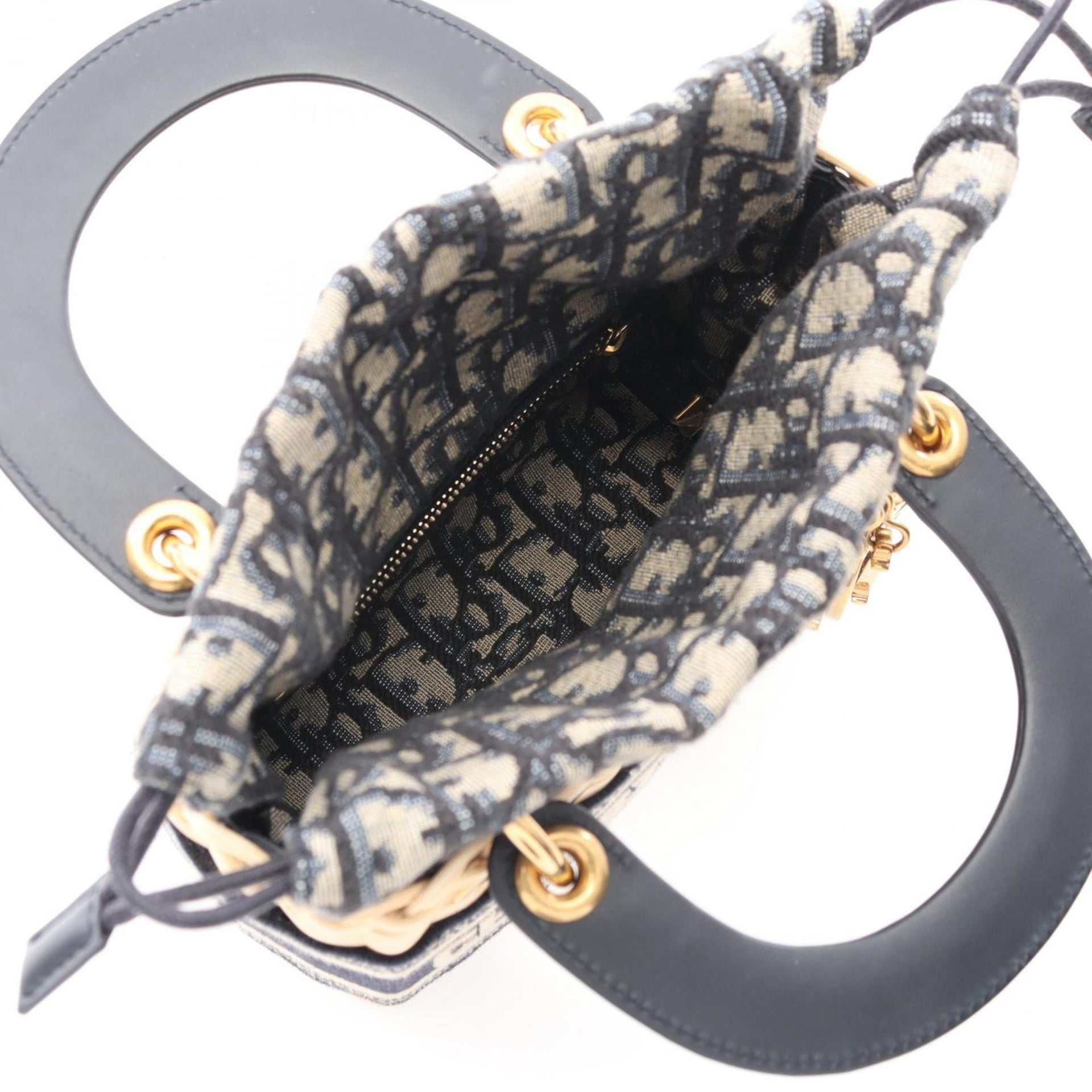 Christian Dior Dior Lady Handbag, Canvas, Leather, and Straw, Women\'s, Beige/Navy, M0505CMVO_M808