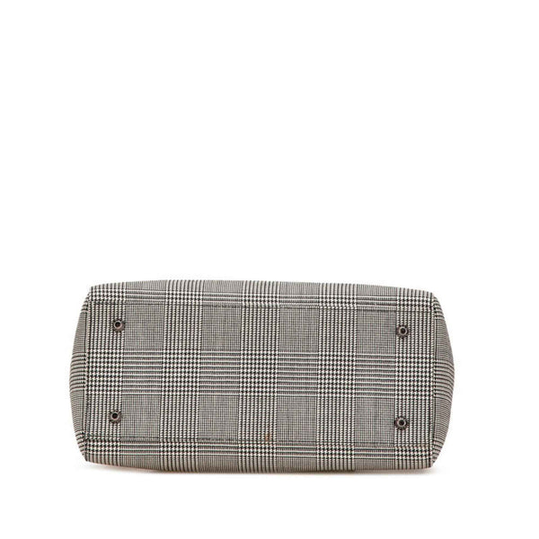 Christian Dior Dior Lady Houndstooth Handbag Black White Canvas Leather Women\'s