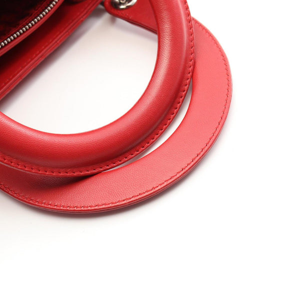 Christian Dior Dior Lady Large Handbag Leather Women\'s Red