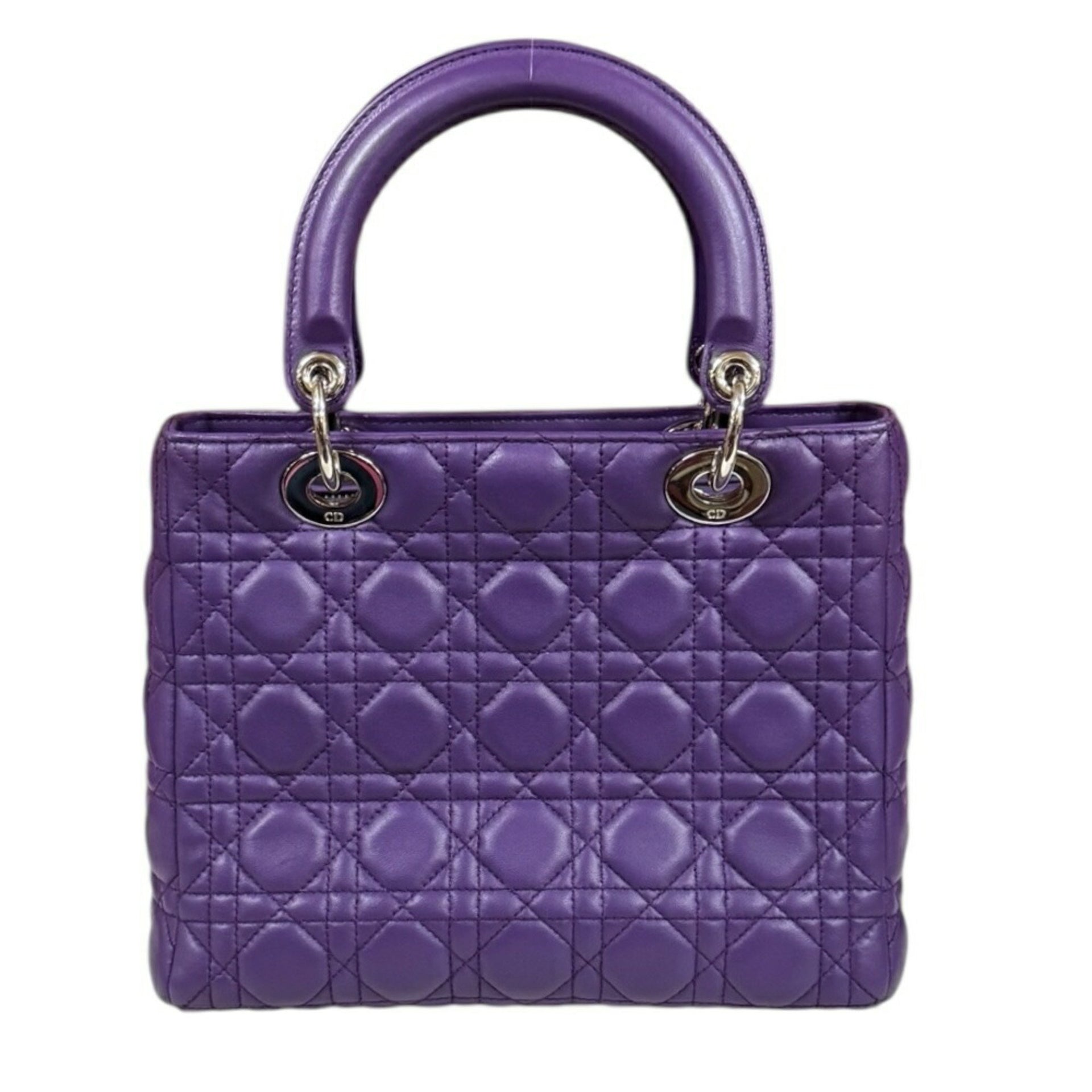 Christian Dior Dior Lady Medium Cannage Shoulder Bag Leather Purple Women\'s 2way