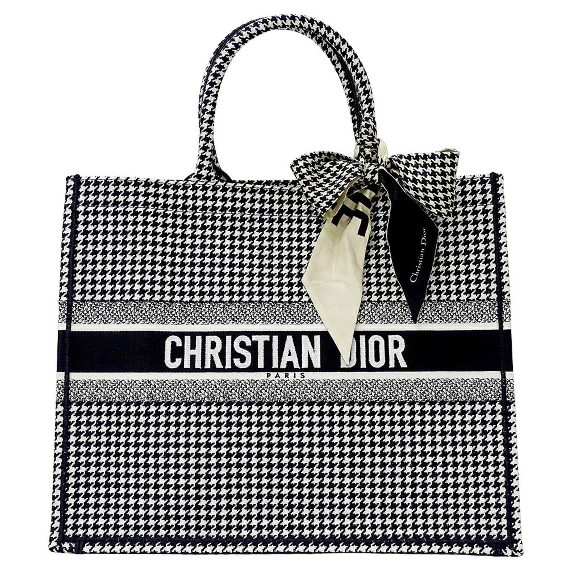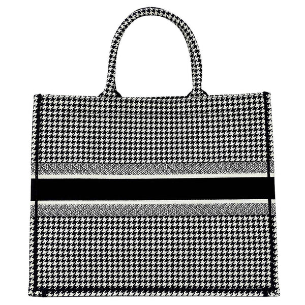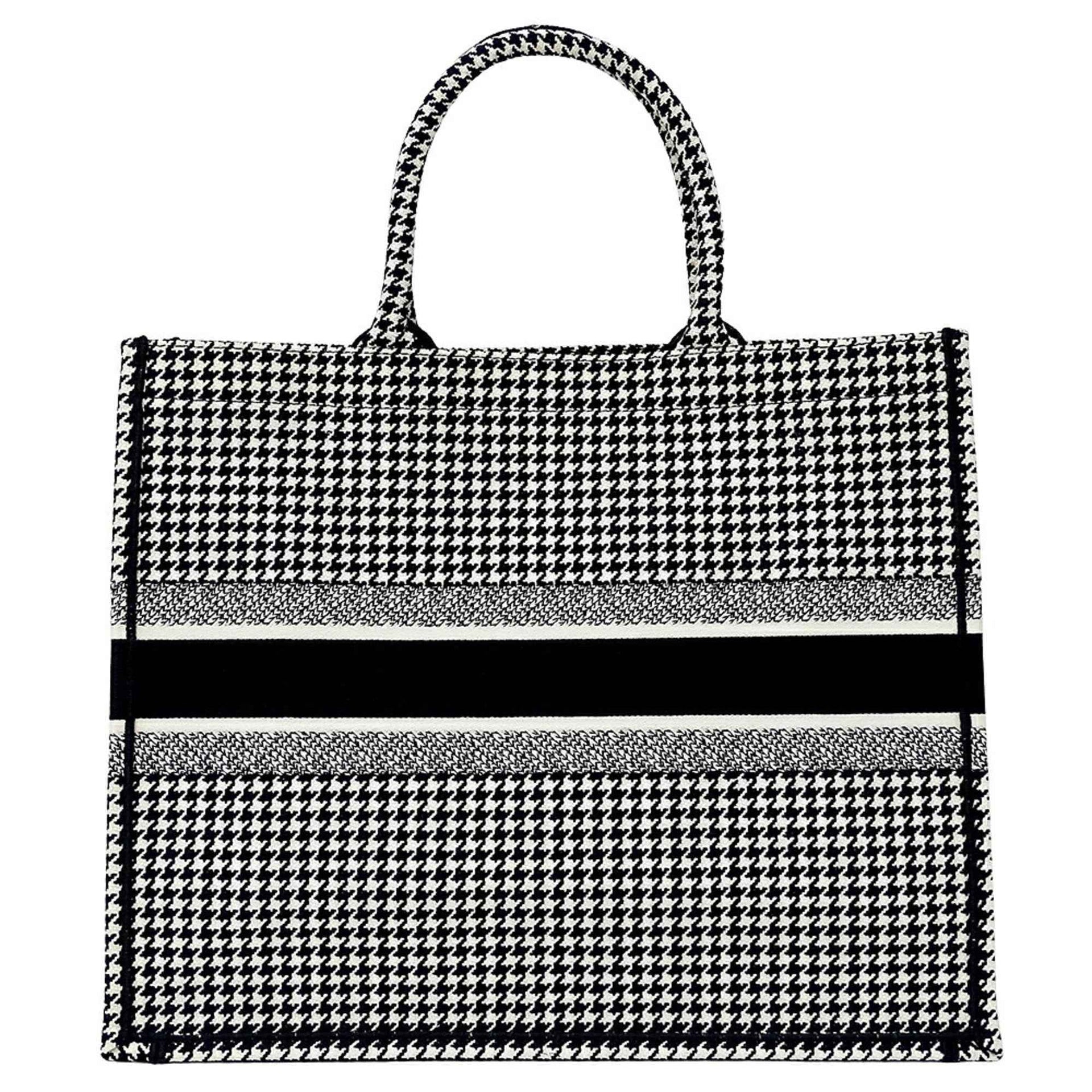 Christian Dior Dior Women\'s Book Tote Bag, Medium, Canvas, Black and White, Houndstooth Pattern, Includes Scarf (Sold Separately)