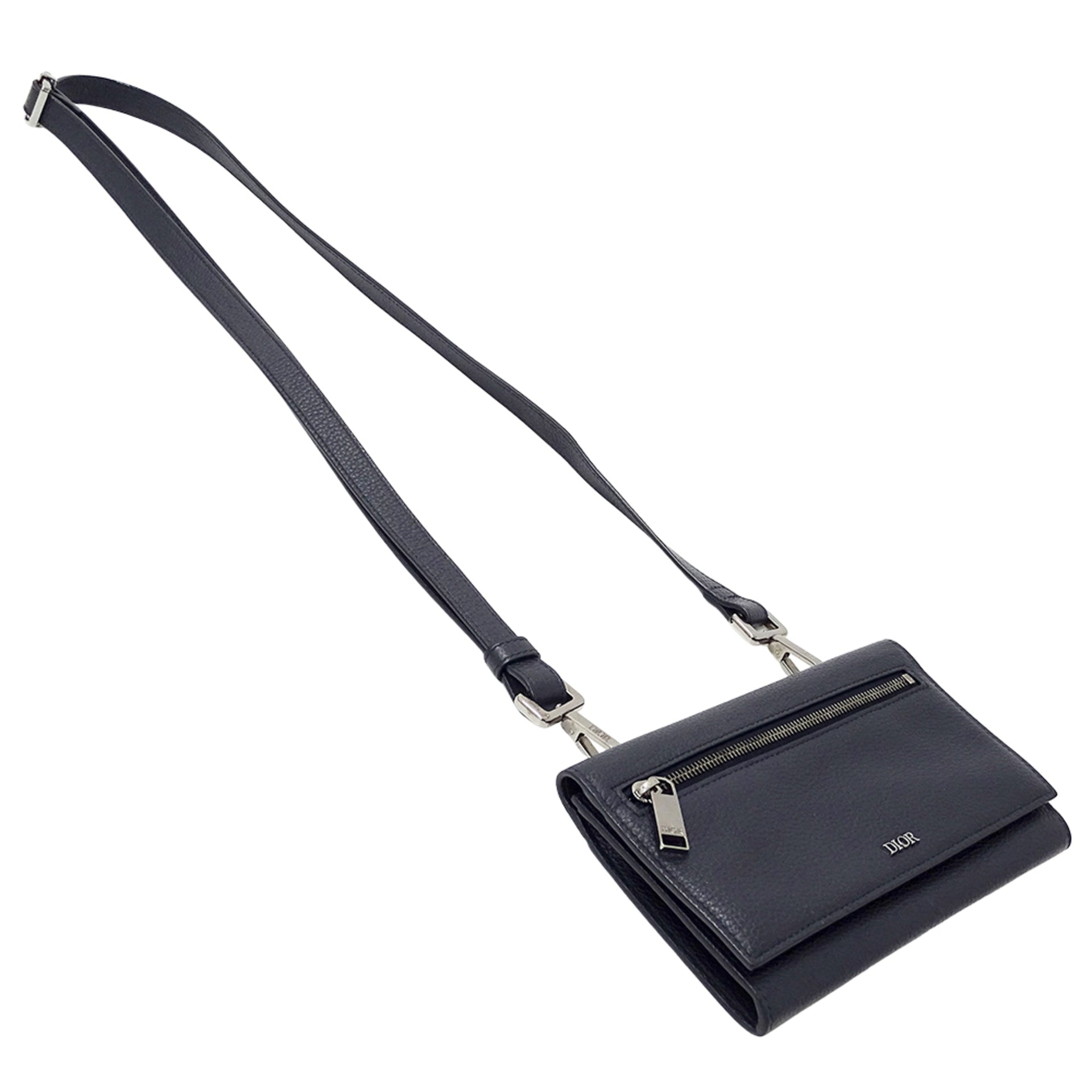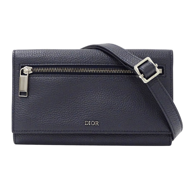 Christian Dior Dior Women\'s Leather Shoulder Wallet, Navy Blue, Long Crossbody