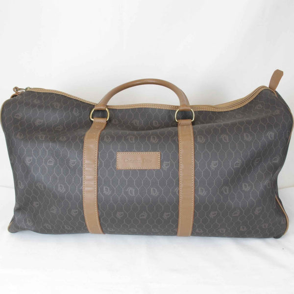 Christian Dior Honeycomb Boston Bag in Canvas/Leather, Unisex, Brown