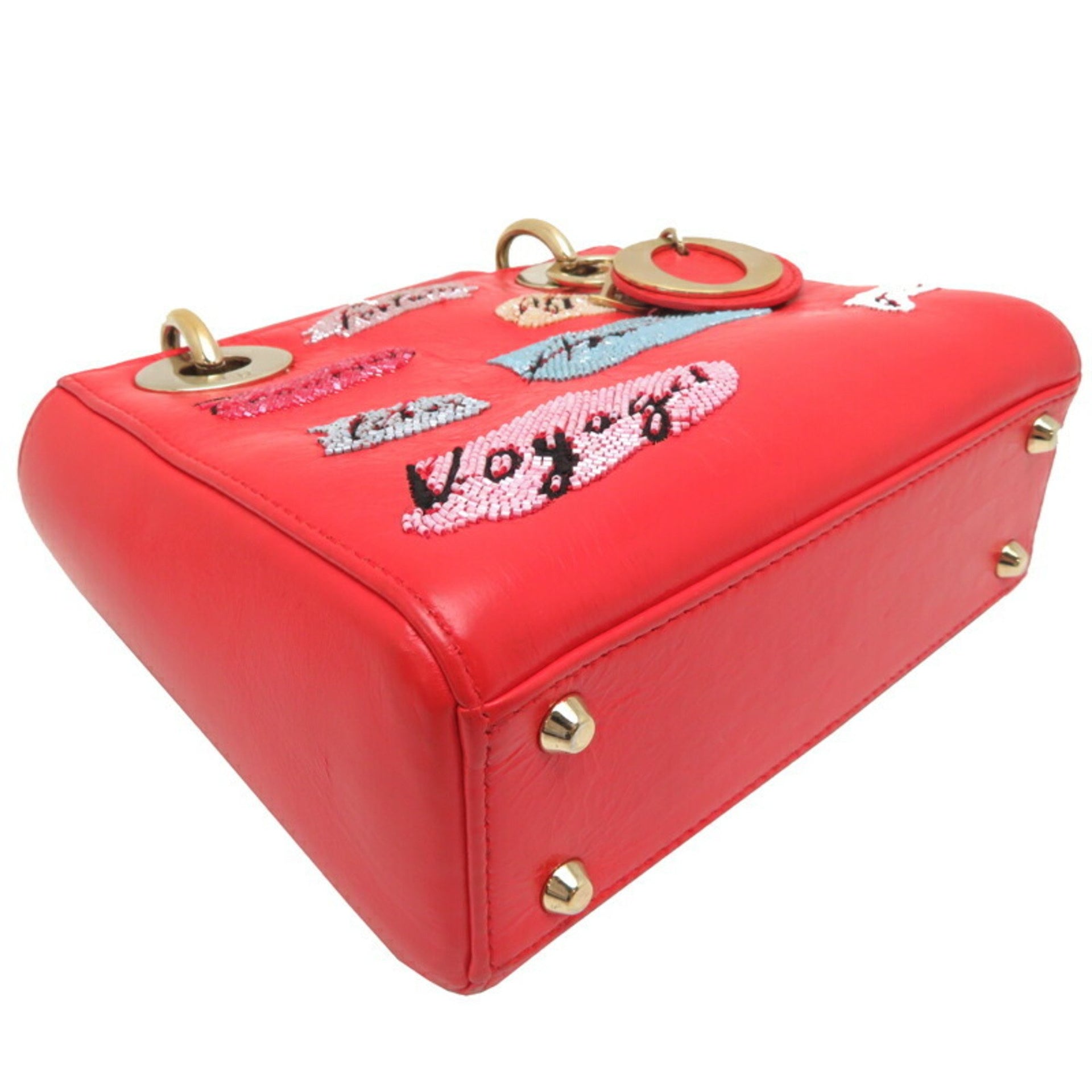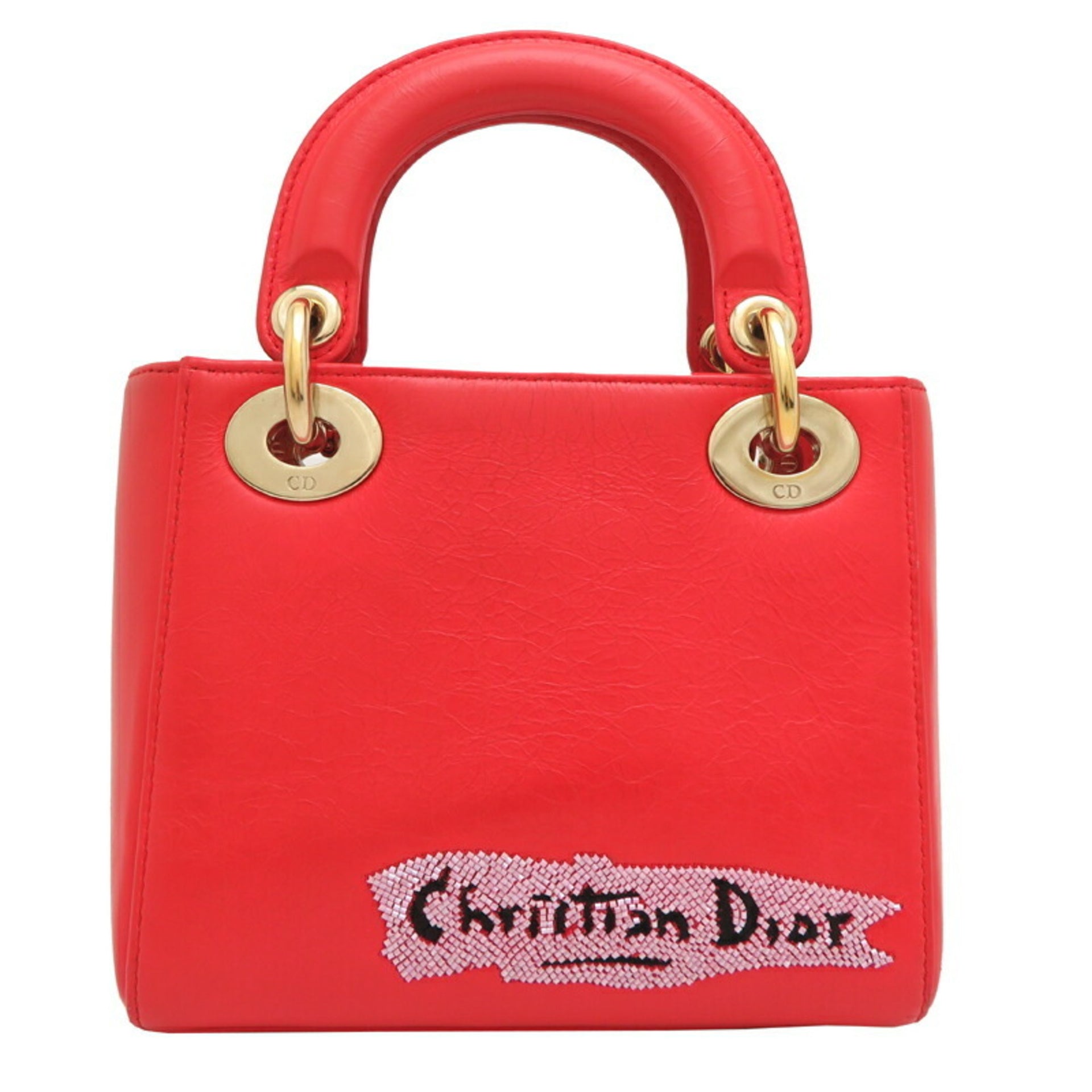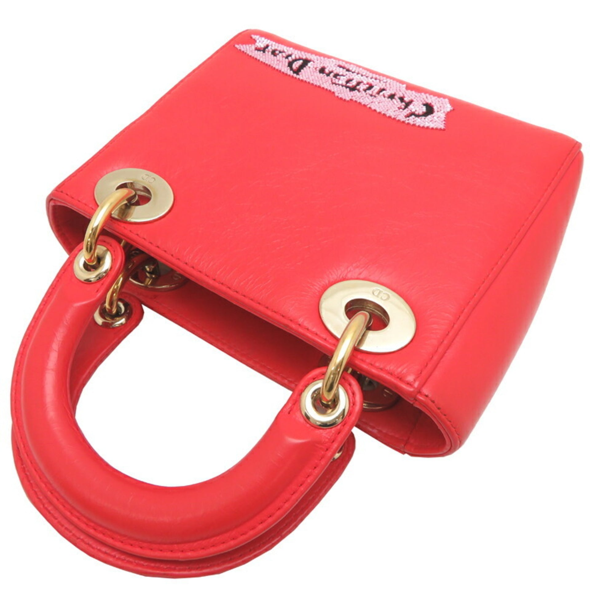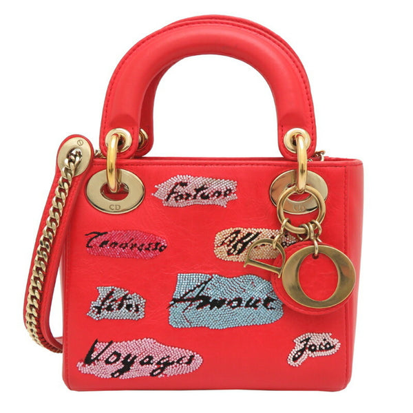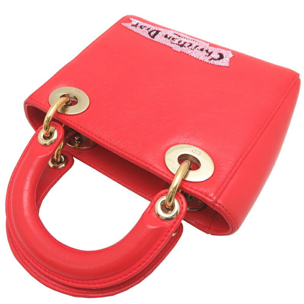 Christian Dior Lady Mini Women\'s Handbag Leather Vermilion (Orange)