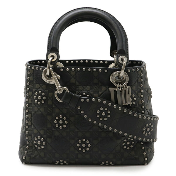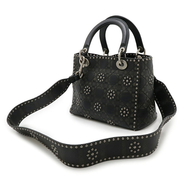 Christian Dior Lady Studded Cannage Handbag/Shoulder Bag in Black Calfskin