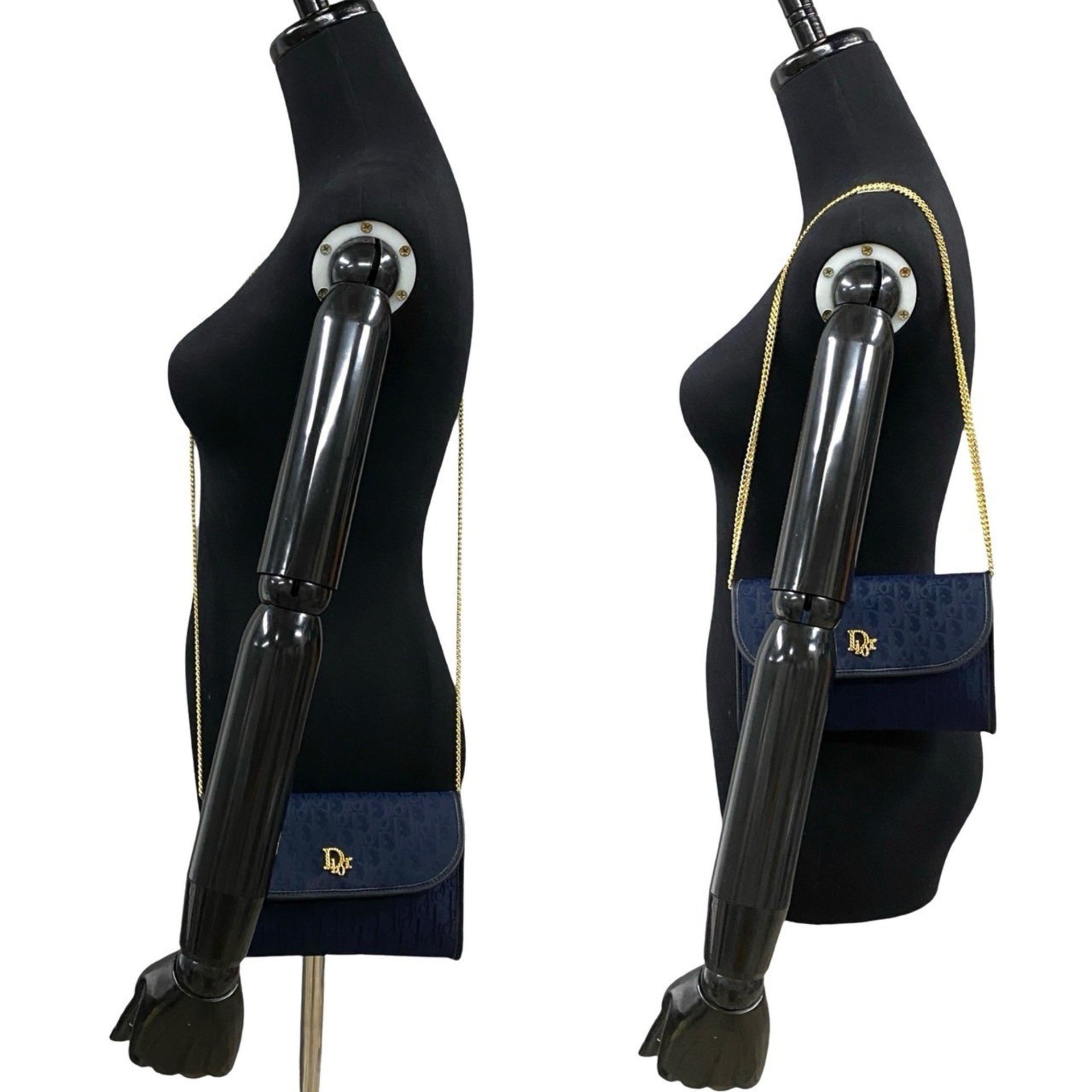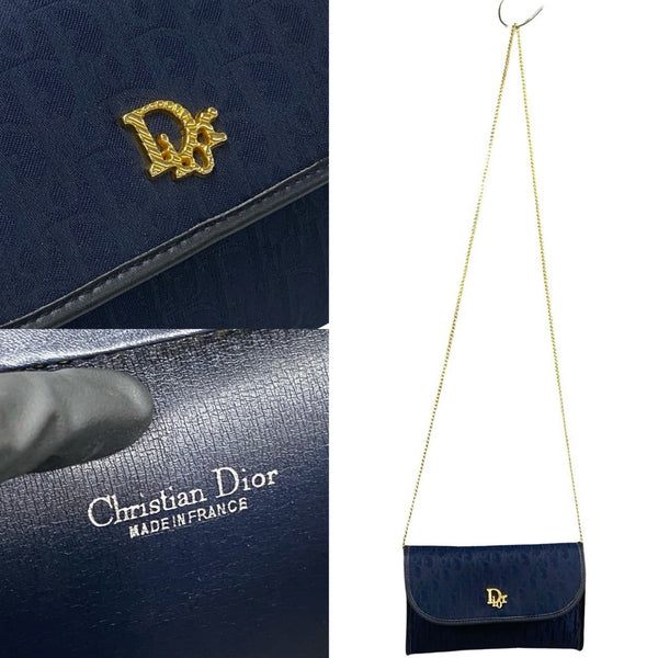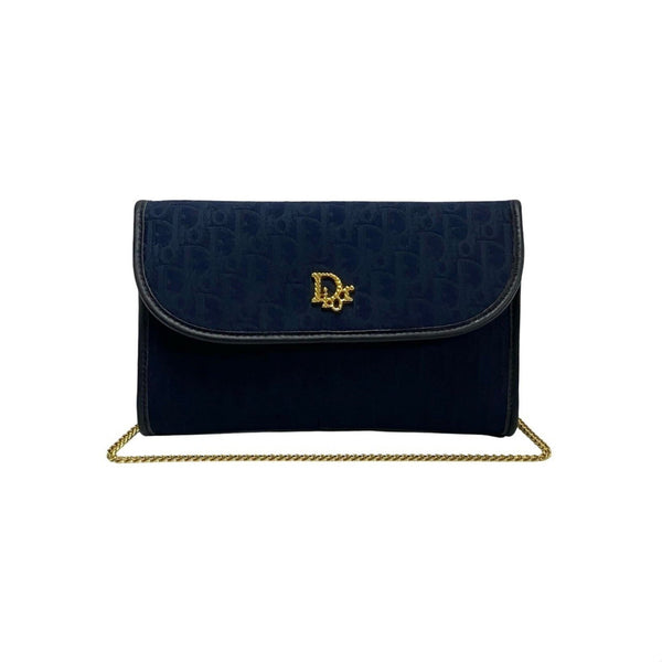 Christian Dior logo hardware, Trotter pattern, genuine leather, canvas, chain, mini shoulder bag, navy blue, 54114